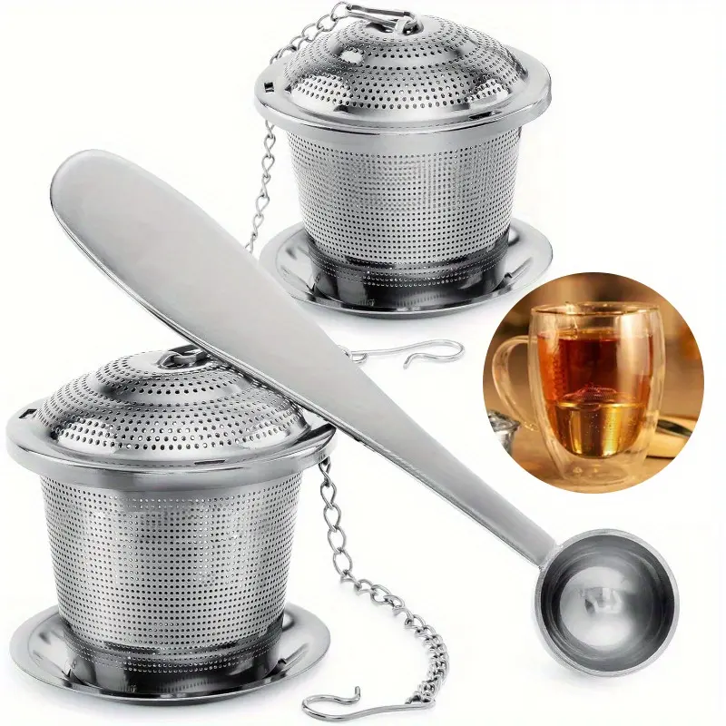 LARGE CAPACITY – MORE TEA FOR EVERYONE: Set includes 2 tea infusers, 2 drip trays and 1 tea scoop. Now you can brew tea for you and your beloved ones or a houseful of friends. Instant refreshment!