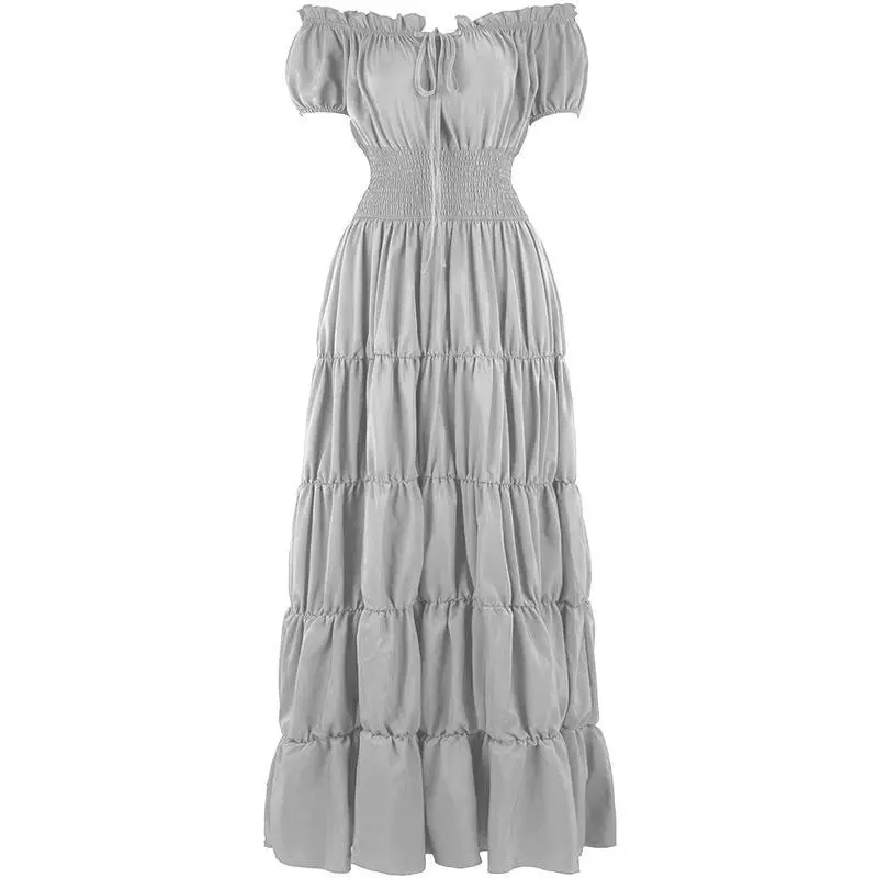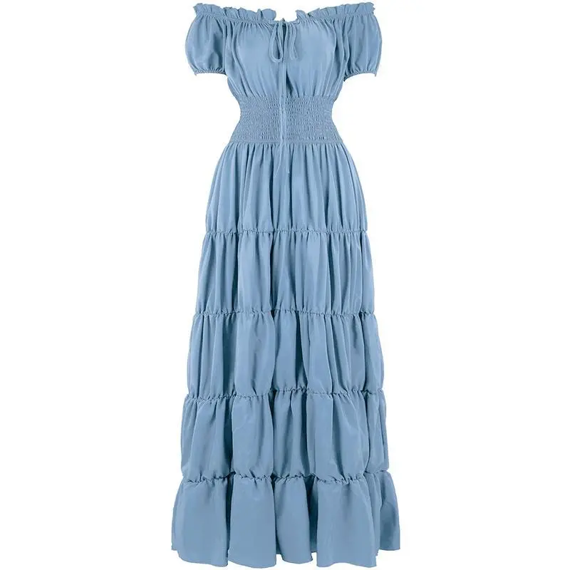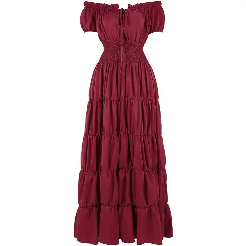 RenaissanceCostumeWomenMedievalIrishUnderDressRetroGownWenchPeasantSmockedWaistLongDressesHalloweenCostumesGirlsCorsetDress