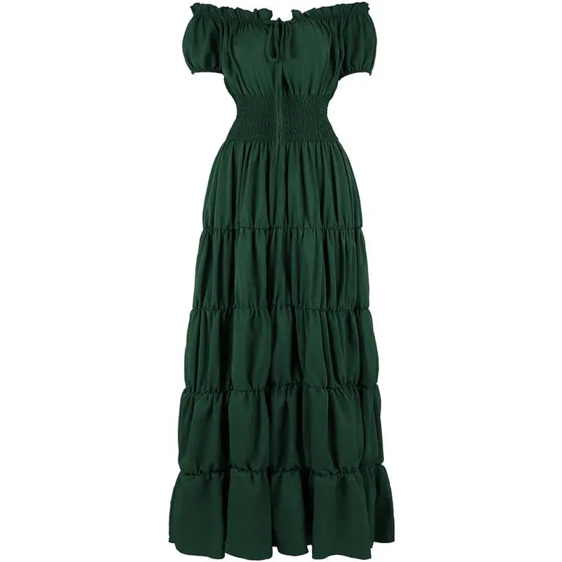 (New)RenaissanceCostumeWomenMedievalIrishUnderDressRetroGownWenchPeasantSmockedWaistLongDressesHalloweenCostumesGirlsCorsetDress