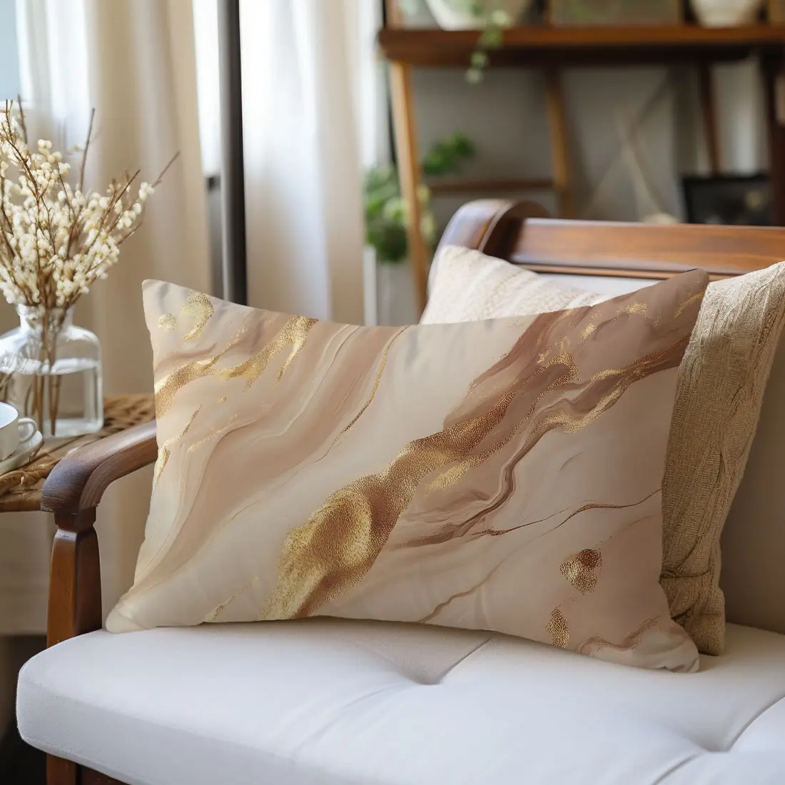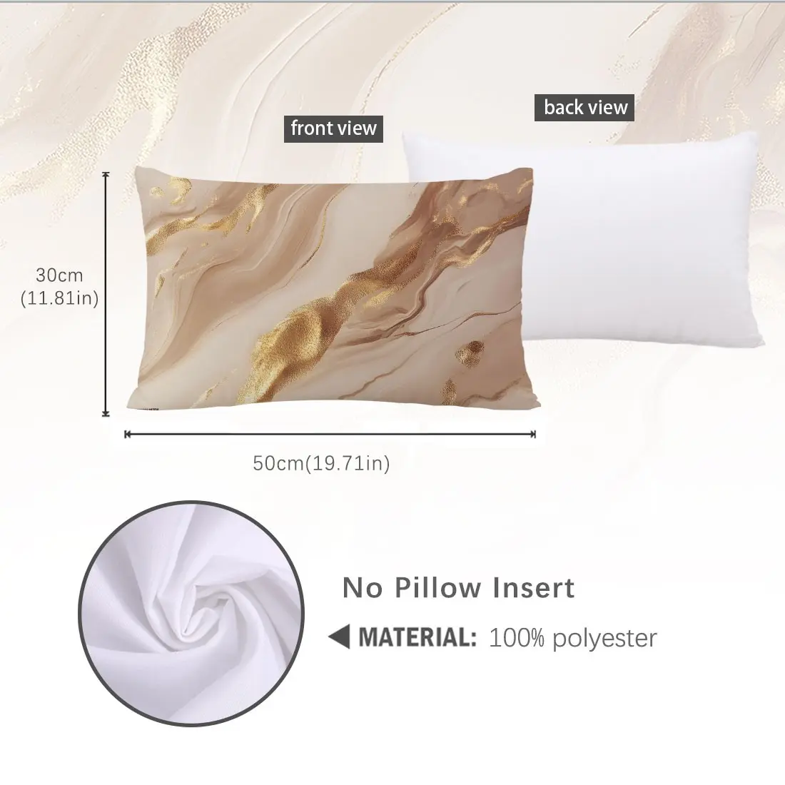 Champagne Marble Pattern Pillow Cover, 19.71x11.81in Single Side Print, Simple Home Decor for Living Room Bedroom, No Insert Included