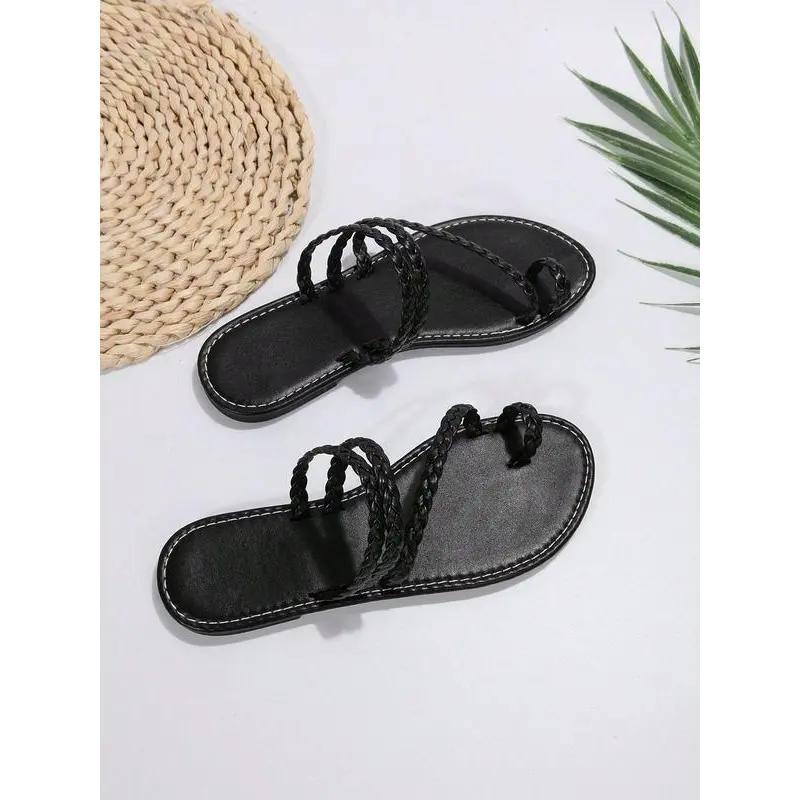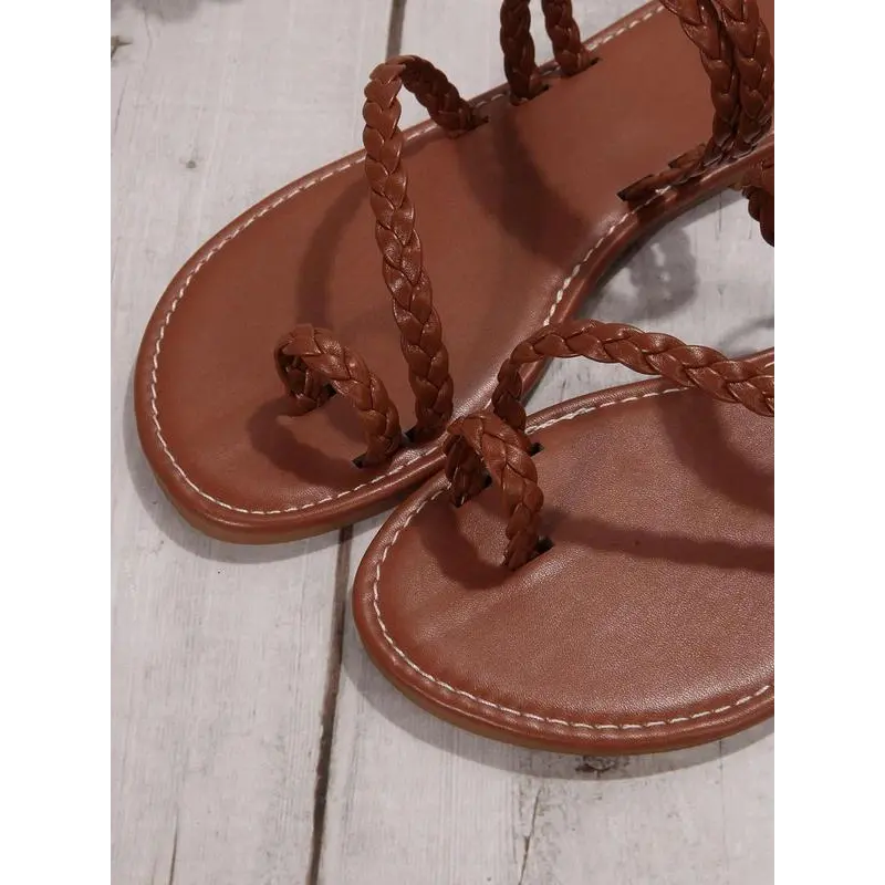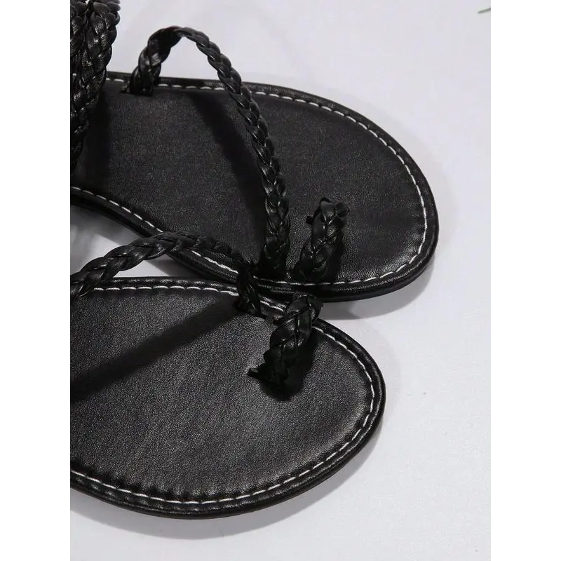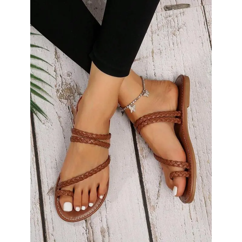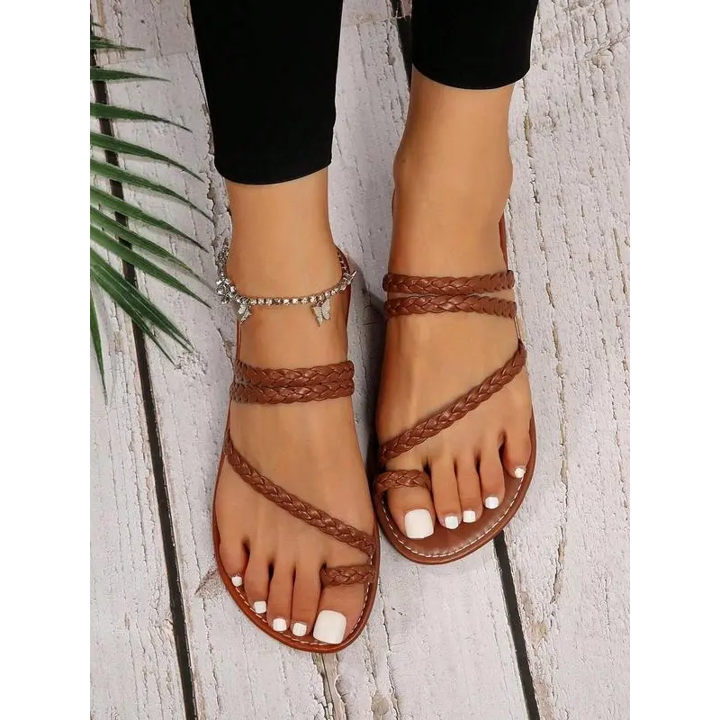 (New)Women's Fashionable Plain Color Ankle Strap Sandals, Casual Comfortable Flat Sandals for Beach Vacation, All-match Barefoot Shoes for Daily Wear, Summer