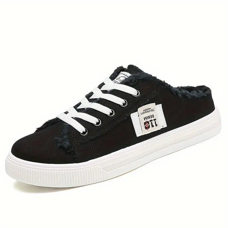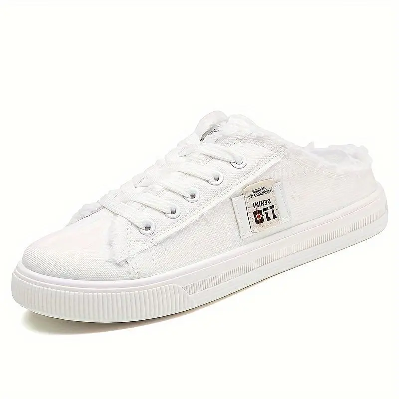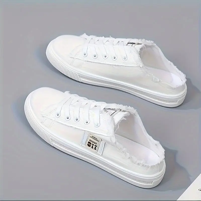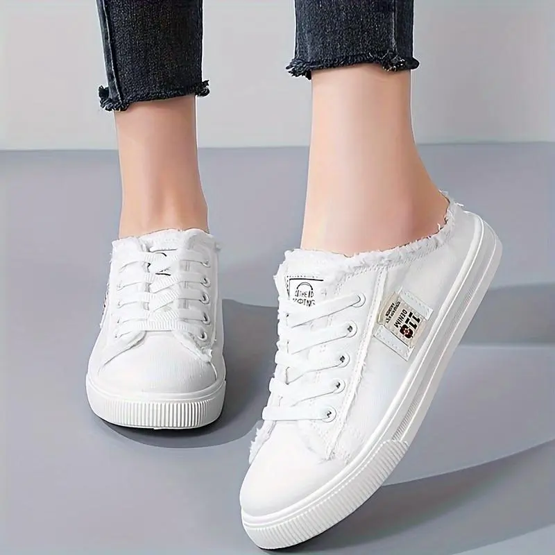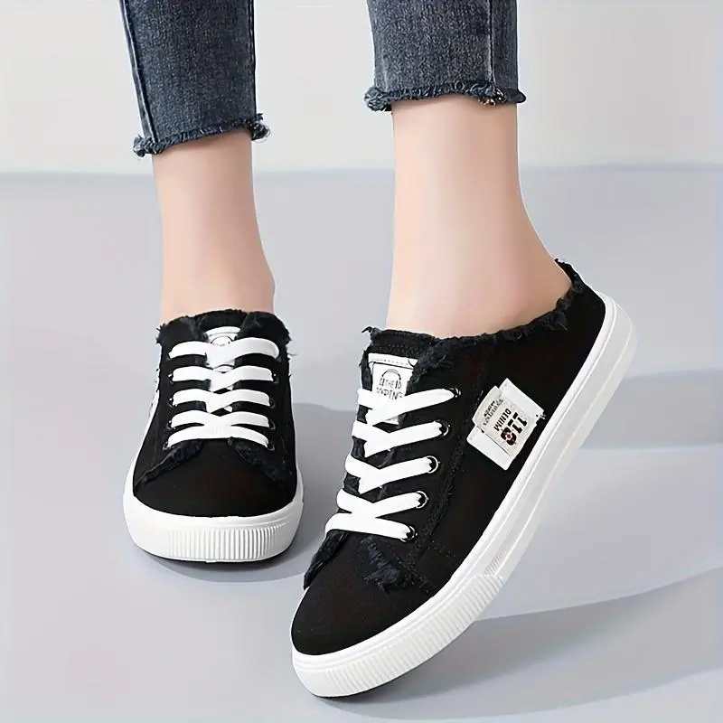 Women's solid color canvas shoes, round toe slippers, fully matched lace up breathable slip on shoes, women's shoes [lightweight design]