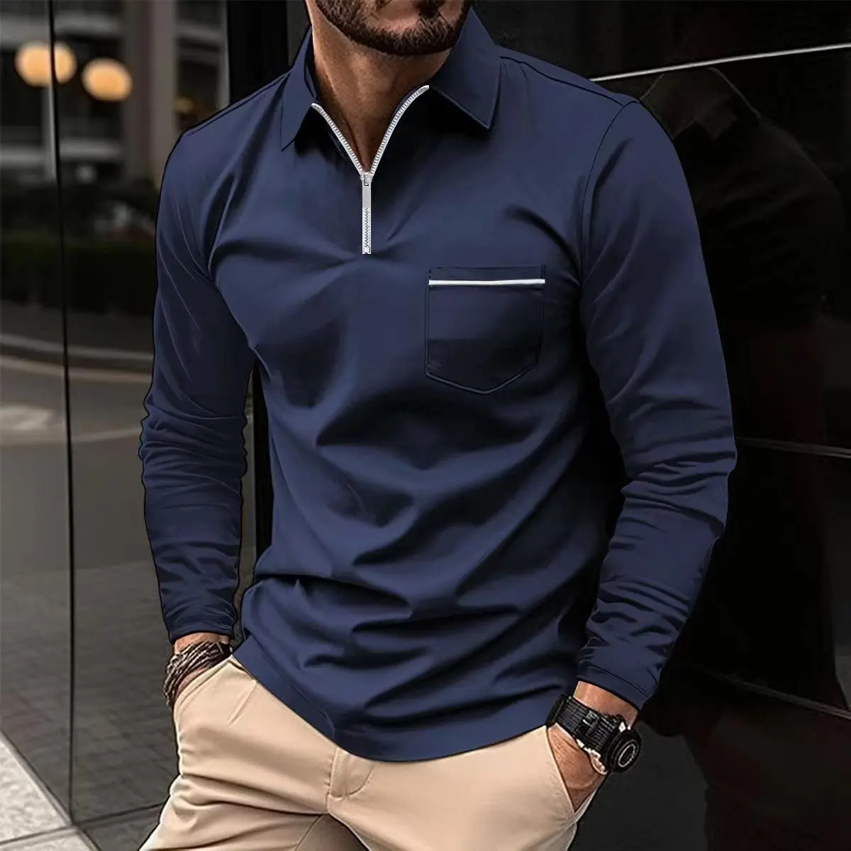This polo shirt is an excellent choice for casual outings. The solid color and zip-up collar make it versatile for various occasions. The polyester-cotton blend ensures comfort and breathability, making it suitable for the warmer months. 🌟