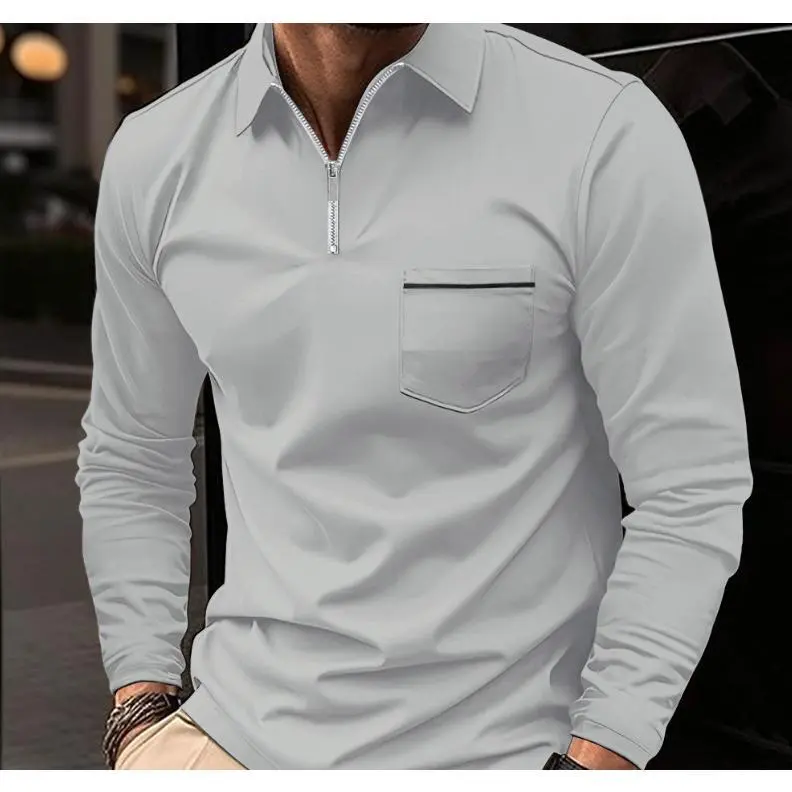 This men's solid color polo shirt with a zip-up collar and made of polyester-cotton blend is an ideal choice for casual wear in spring and summer.