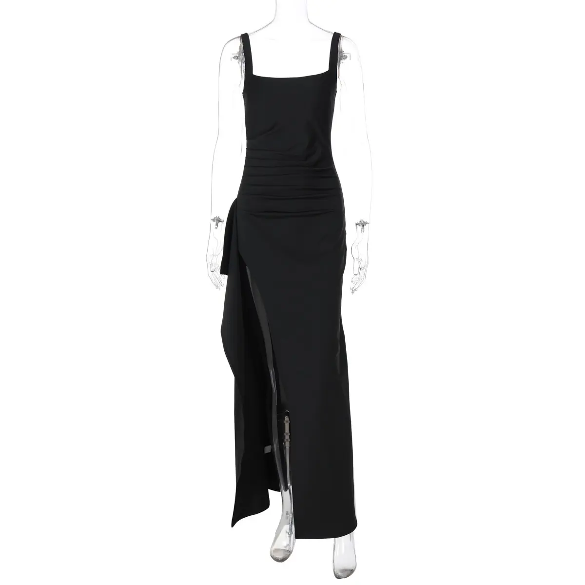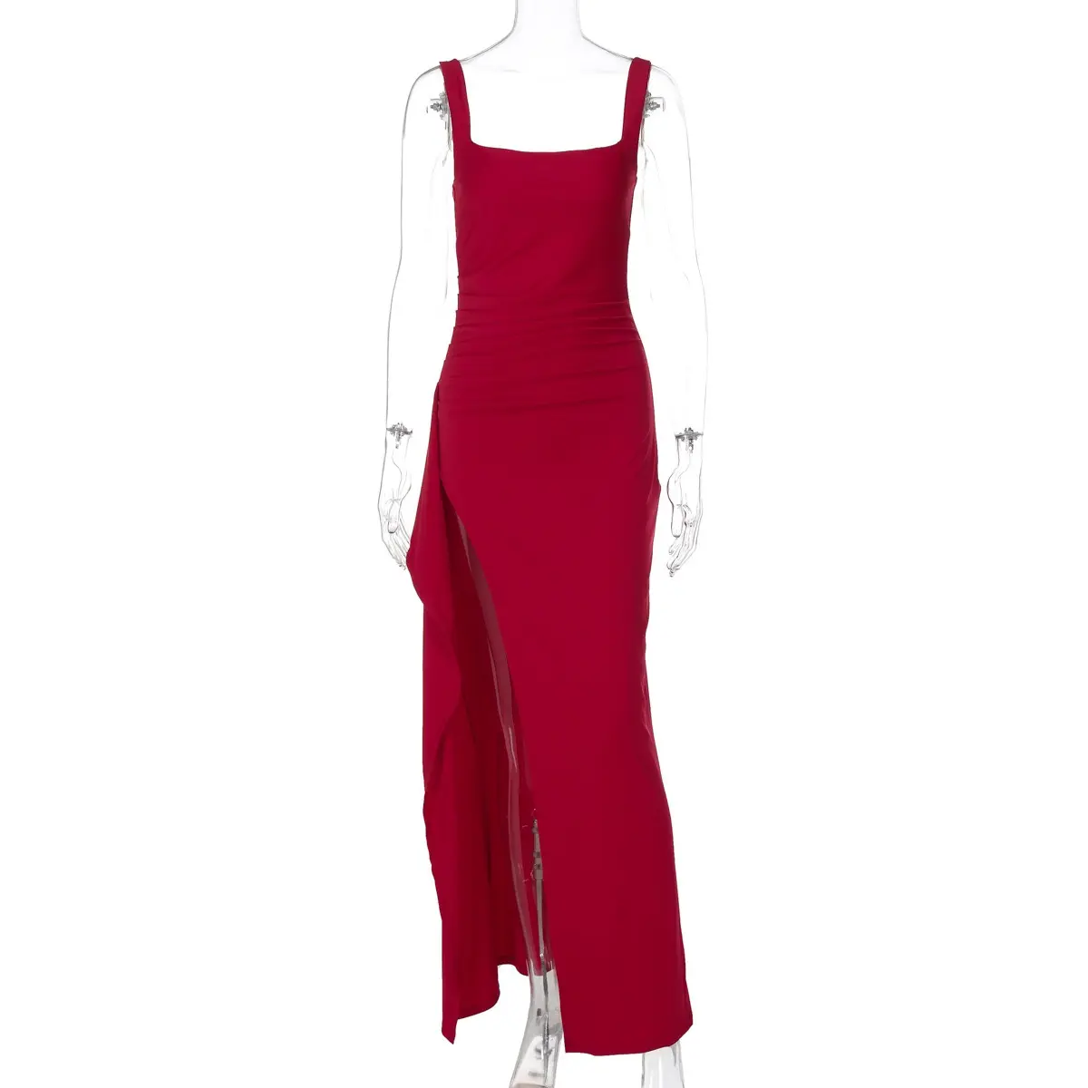 Women's Plain Backless Slip Dress with Thigh Split, Floor-Length Sleeveless Dress for Parties, Clubbing and Dates, Ladies' Elegant Sexy Clothes for All Seasons, Elegant Fitted Dresses