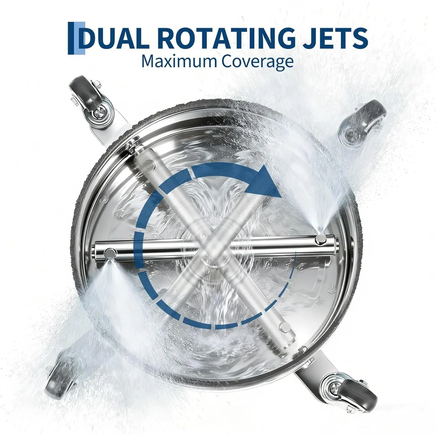 ·FAST, STREAK-FREE: Precision dual spinning nozzles maintain consistent height for uniform cleaning without zebra striping. 4 smooth-rolling caster wheels ensure balanced, smooth motion across wide surfaces. Designed to minimize resistance and operator fatigue during heavy-duty outdoor cleaning.