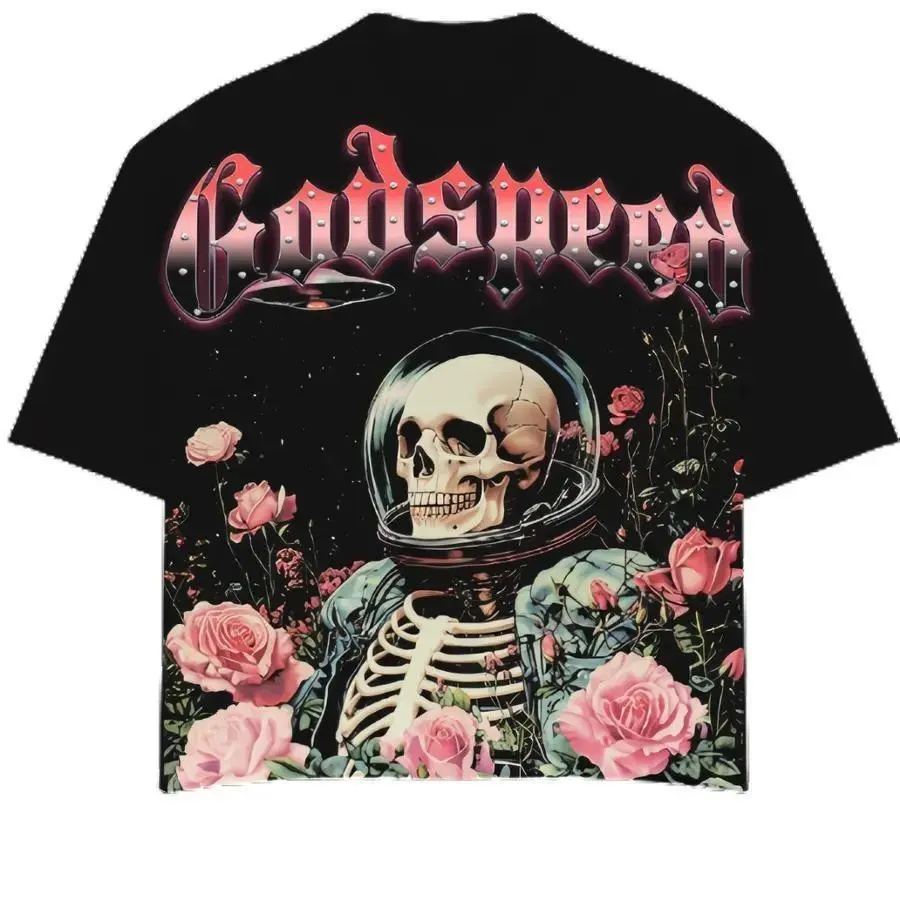 Godspeed Skull Astronaut Rose Graphic T-Shirt, Dark Surrealism God speed tshirt