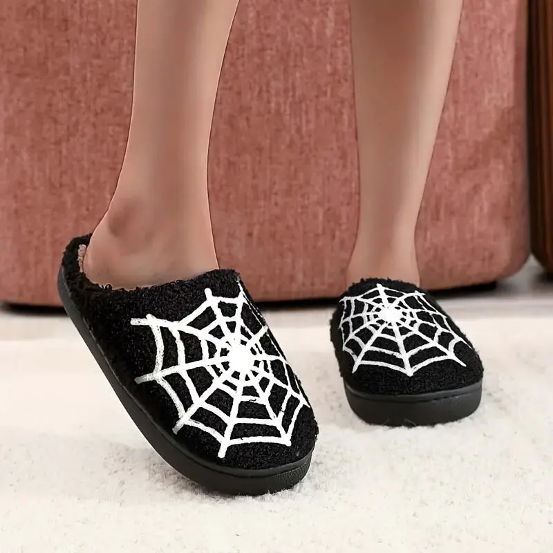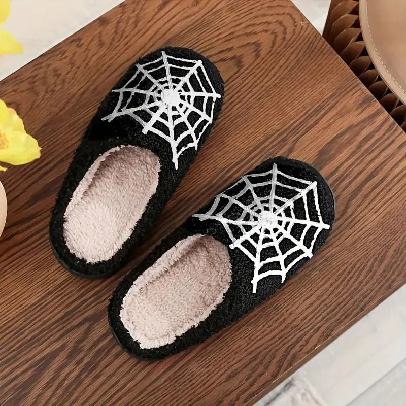 (New)Comfortable and Stylish Spider-Themed Plush Slippers for Men and Women-Warm Non-Slip Indoor Shoes, Soft Textile Lining, Hand Washable-Suitable for All Seasons
