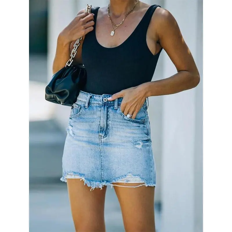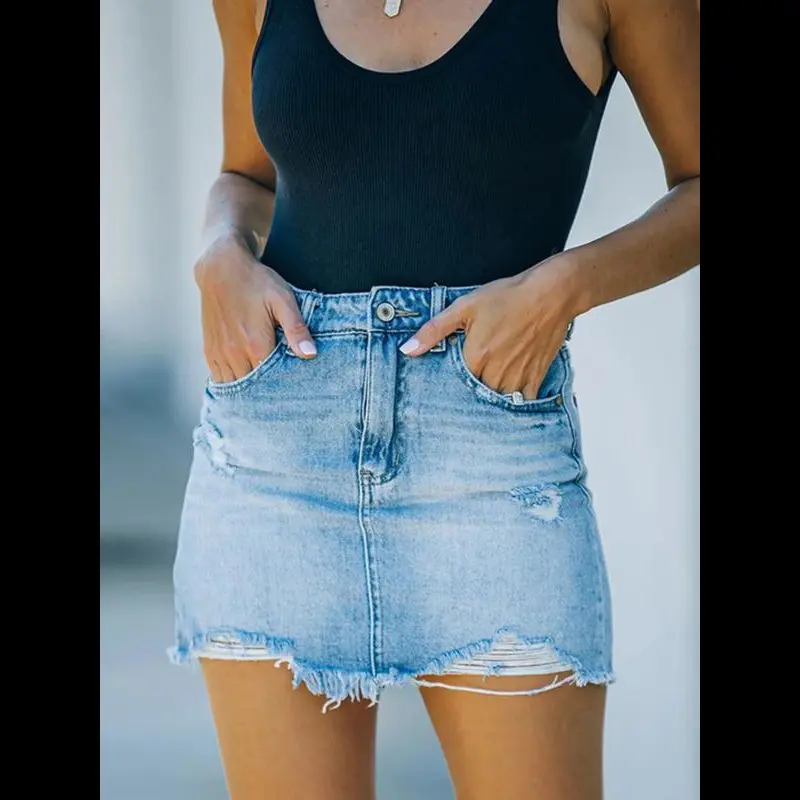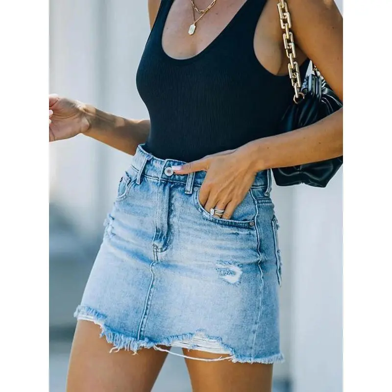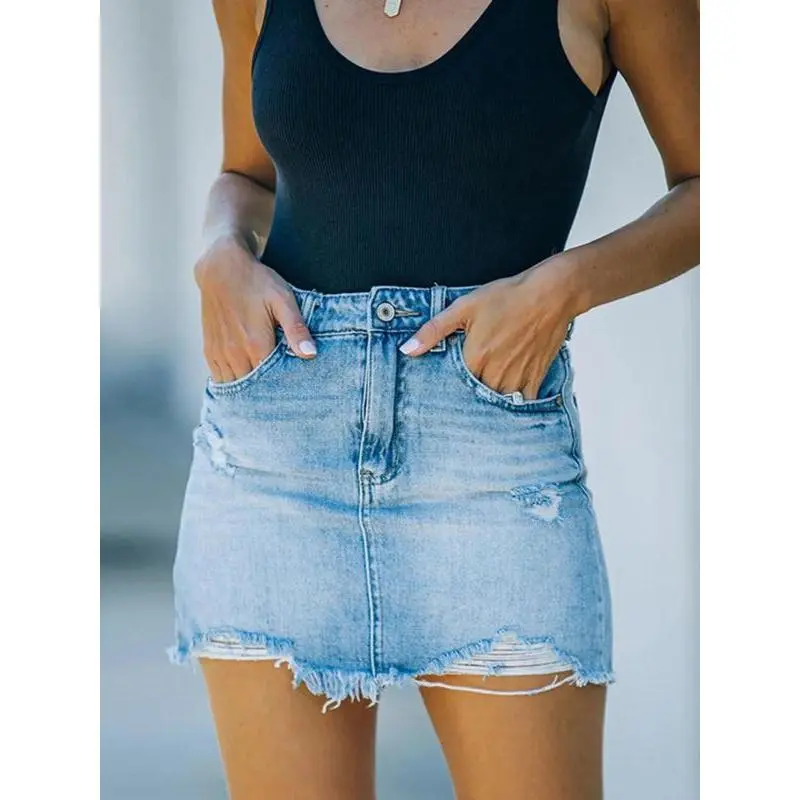 (New)Women's High Waist Summer Denim Skirt with Pockets, Slim Fit Design for Stylish Casual Looks, Comfortable Everyday Wear