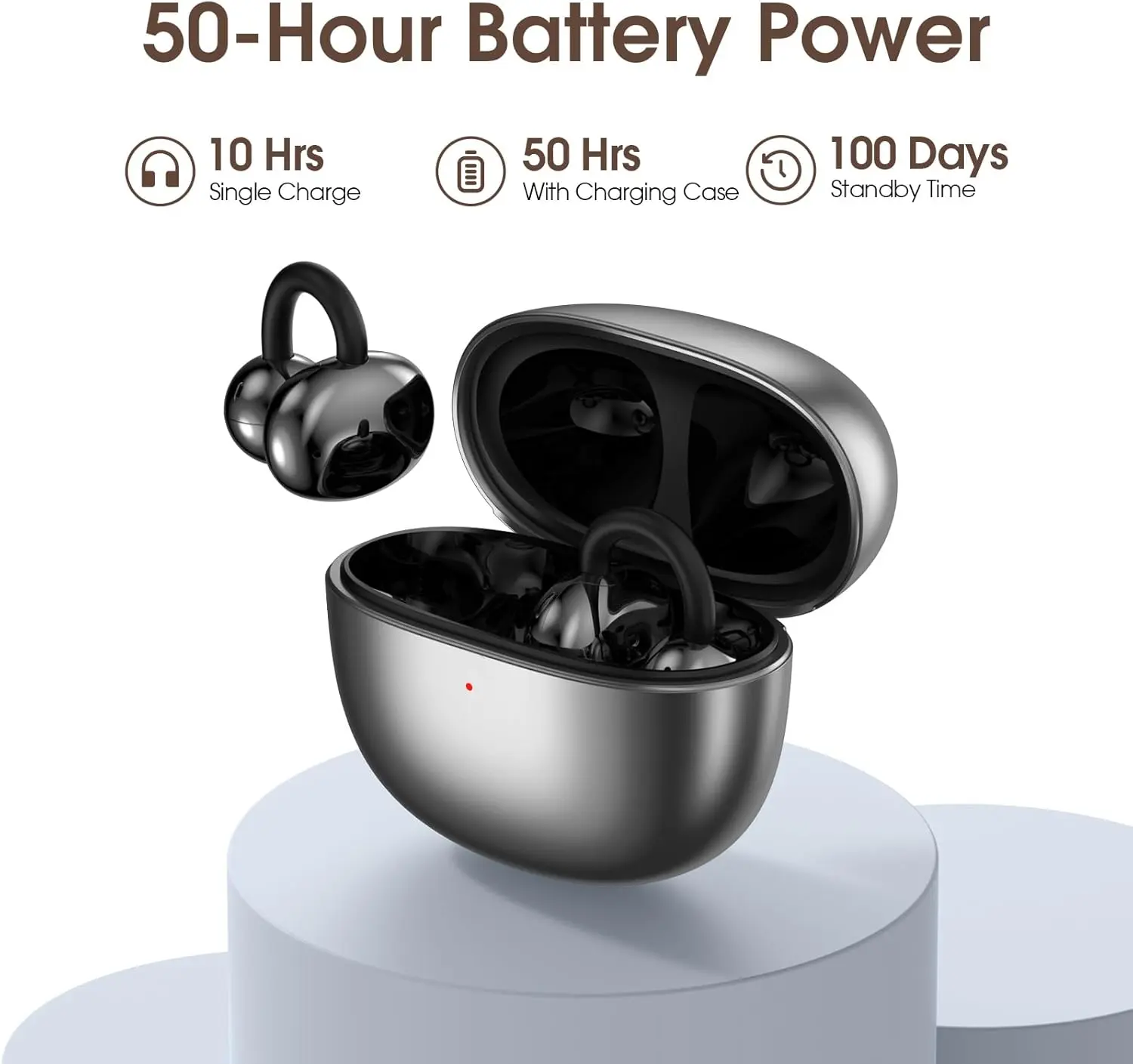 Clip-On Earbuds, Lightweight Comfort with Anti-Drop Design Open Ear Earbuds Bluetooth 5.4, 50H Battery Open Ear Headphones, Waterproof, Perfect for Glasses Wearers, Sports and Workouts