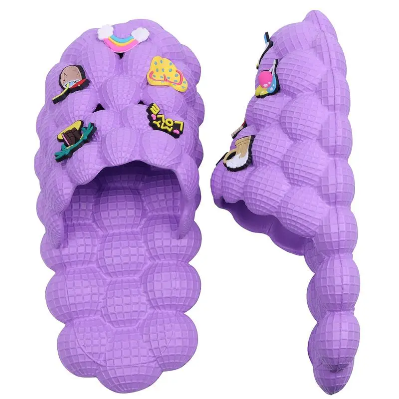 (New)DIOLV Summer Bubble Slides with Charms Boys Girls Golf Ball Shoes Funny Lychee Massage Bubble Slides Kids Non-Slip House Slippers Beach Sandals