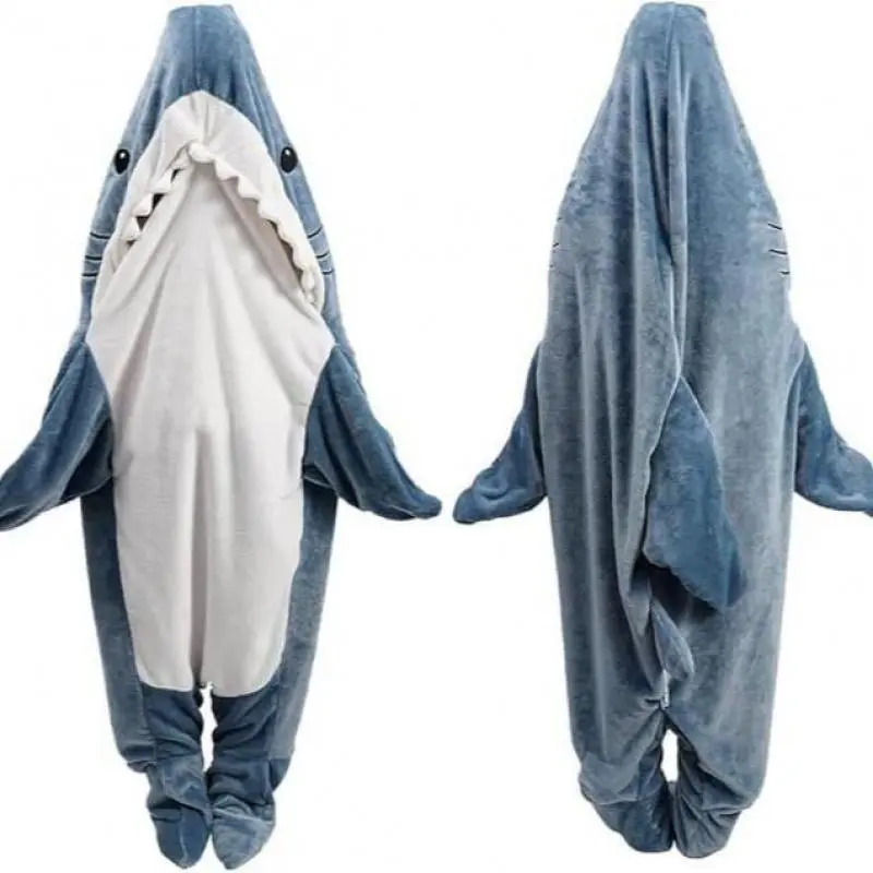 (New)Shark Pajamas Adult Cute Shark Blanket Hoodie Wearable Blanket Super Soft Flannel Sleeping Bag Anti-Kicking Blanket winter loungewear Nightwear Womenswear Onesies Homewear Pjs Long Sleeve