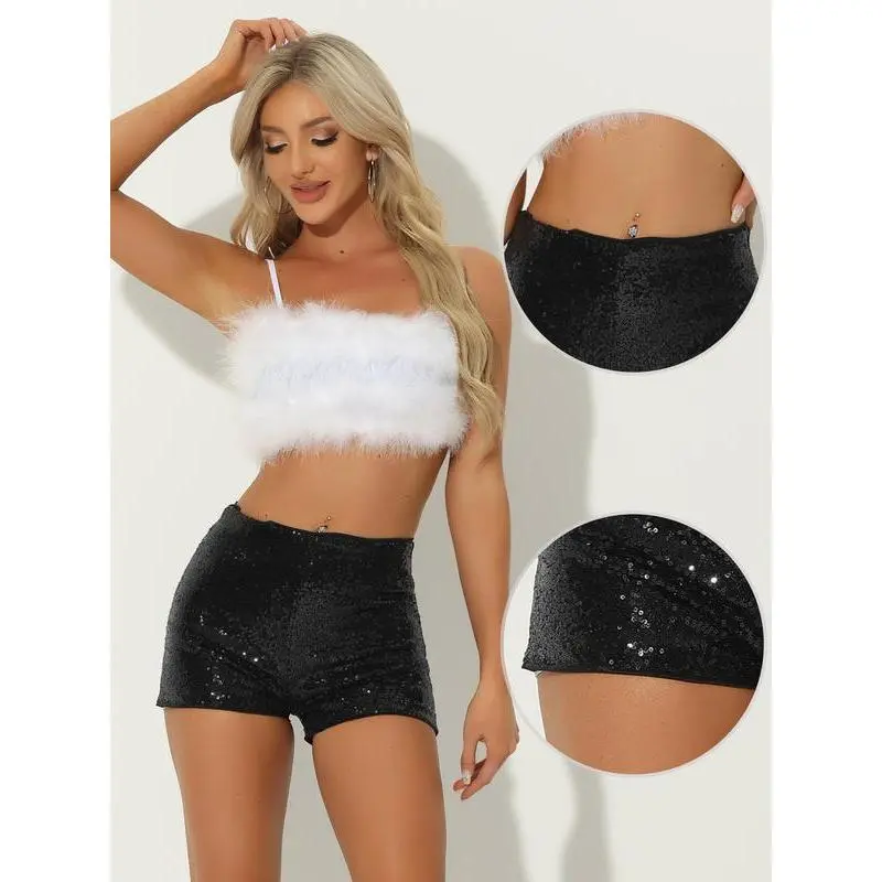 INSPIRE CHIC Sequin Shorts Midrise Solid Zipper Elastic Waist Sparkle Night Out Shorts BlackGift