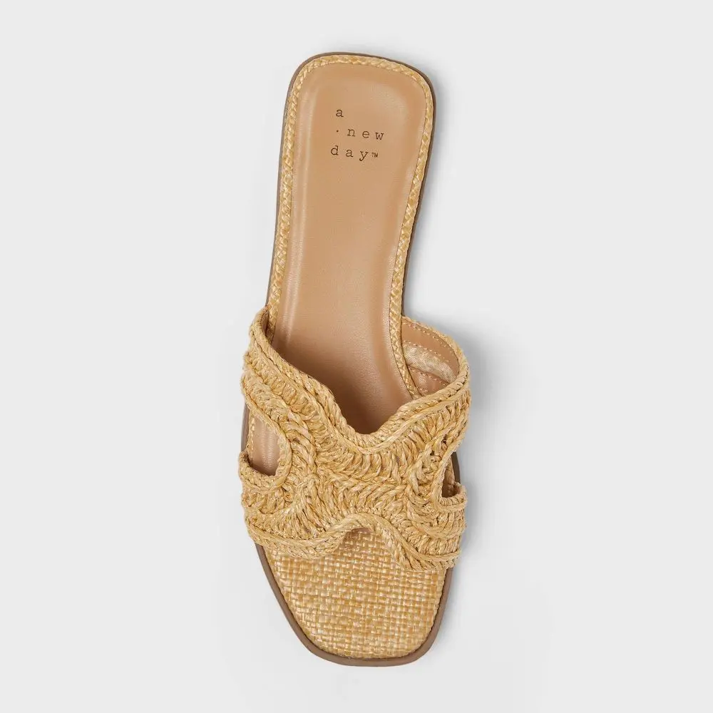 Bring a subtle touch of sophistication to your everyday outfits with these Nina Sandals with Memory Foam Insole from A New Day. These slip-on sandals feature a single wide band with cutouts and boasts a cushioned insole to provide better arch support for all-day comfort. Designed with an open round toe, these medium-width sandals will be your go-to choice for casual outings.