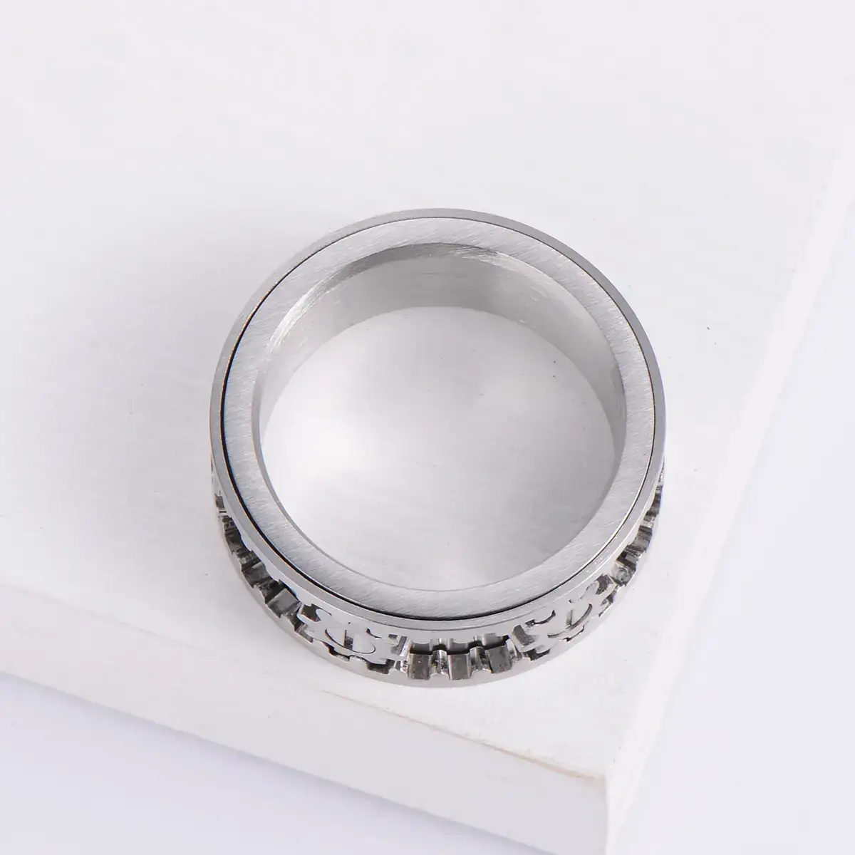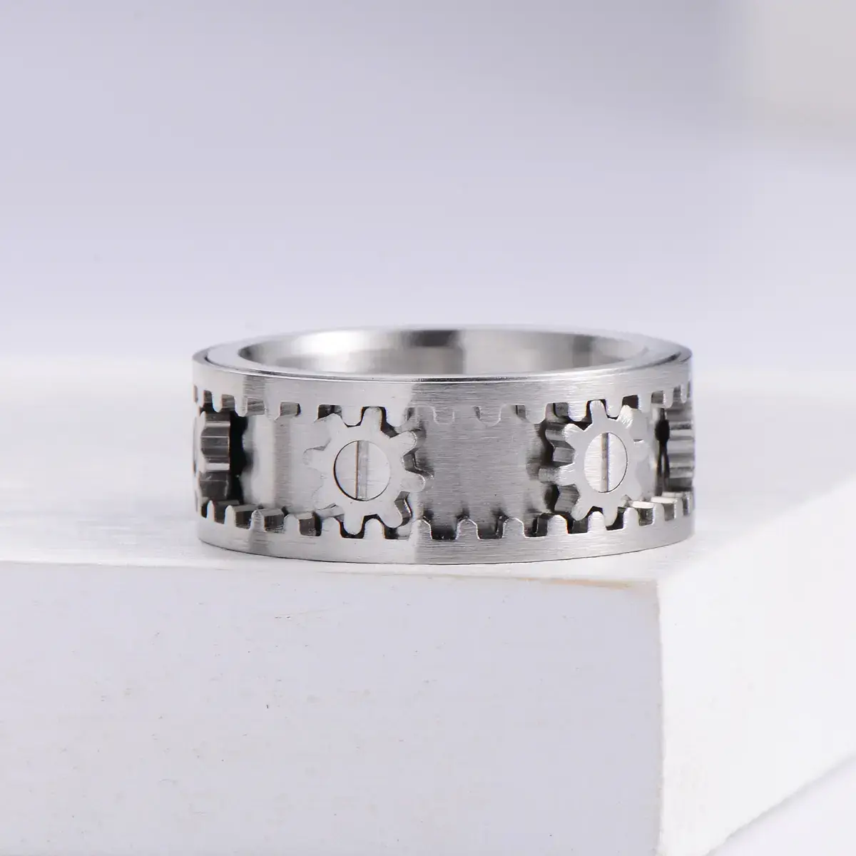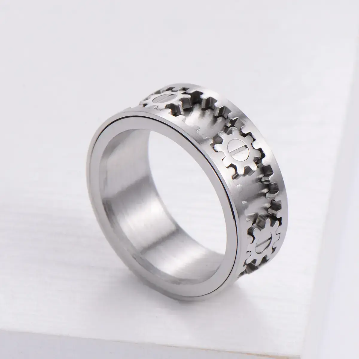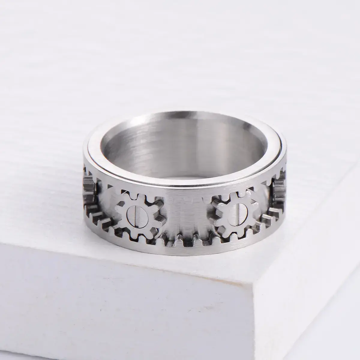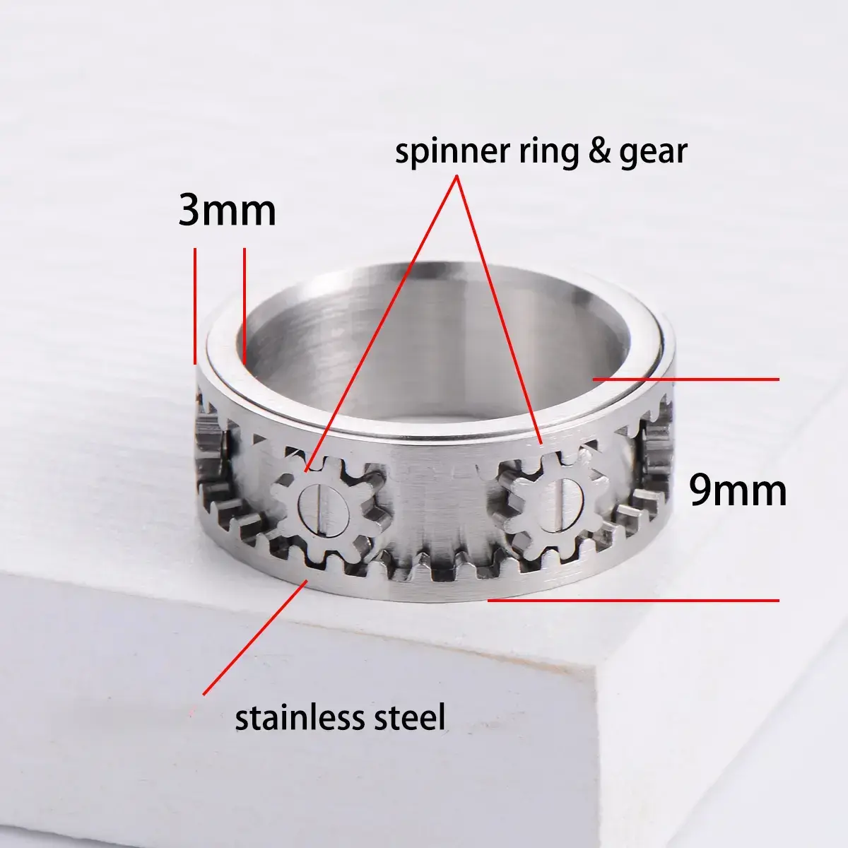 New Men's Stainless Steel Ring Rotatable Gear Ring Gift Box Packaging Holiday Gift