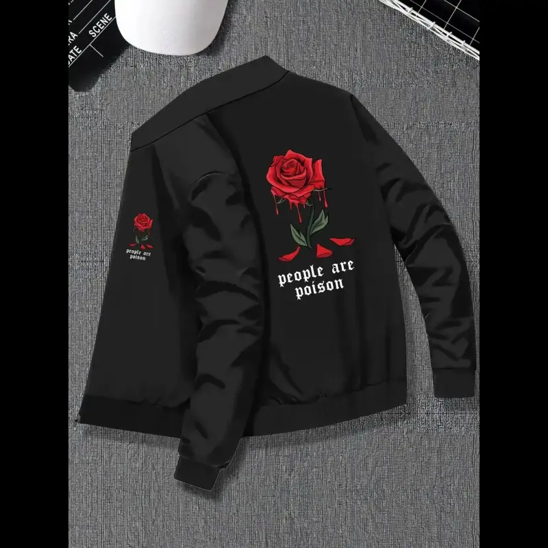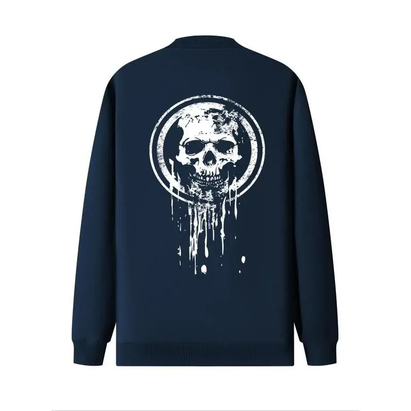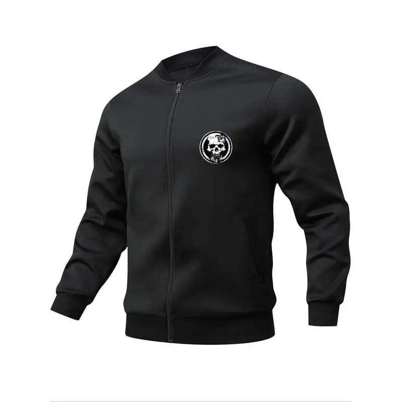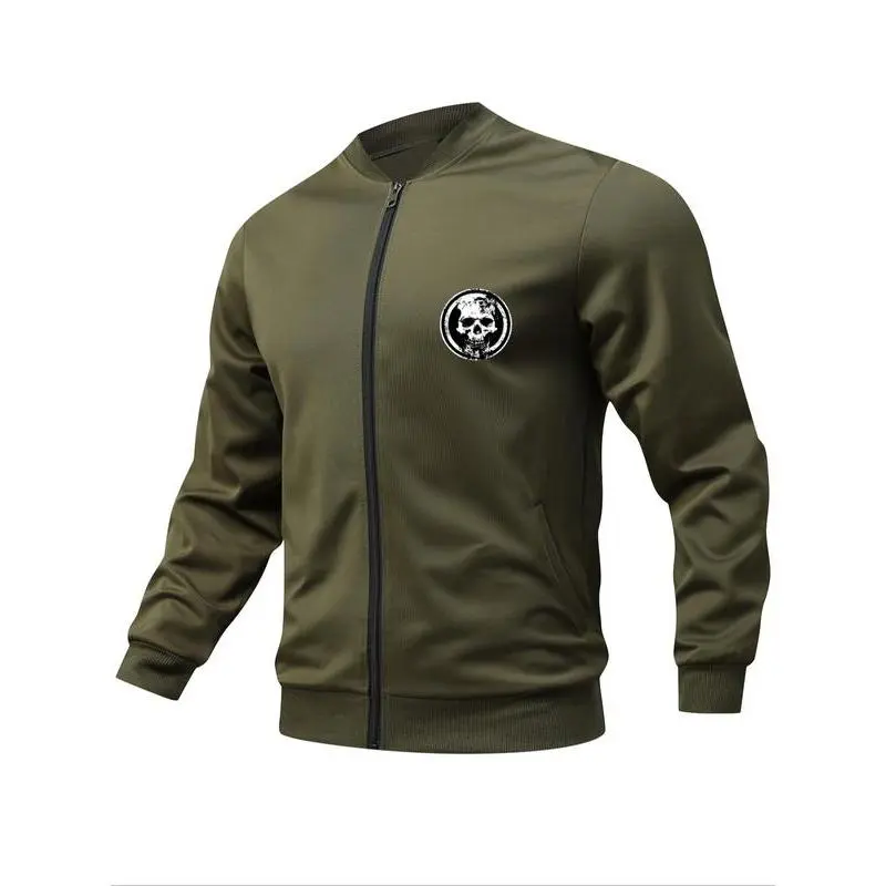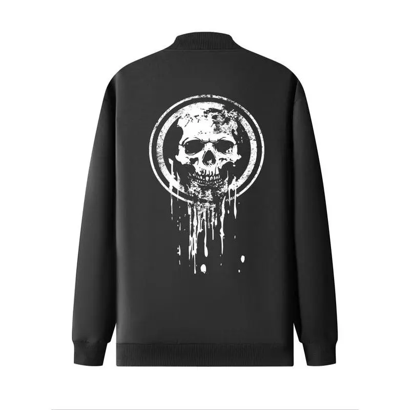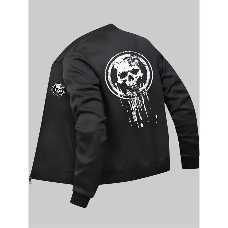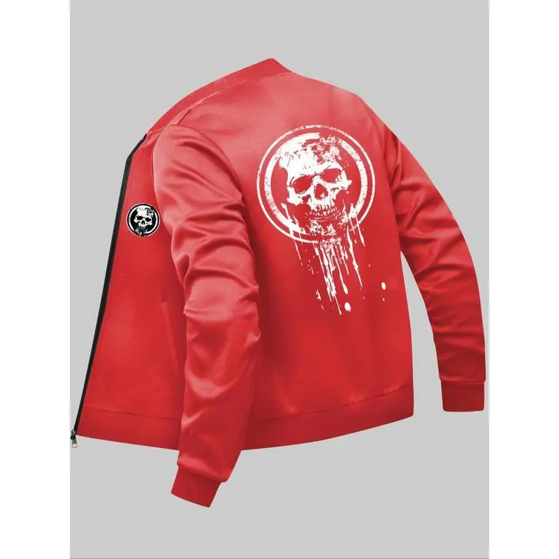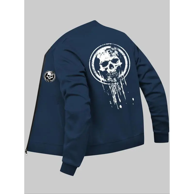 Men's Skull Print Zip Up Pocket Jacket, Regular Fit Casual Long Sleeve Baseball Collar Outerwear for Daily Wear, Fashion Men's Clothes for All Seasons, Casual Trendy Coat