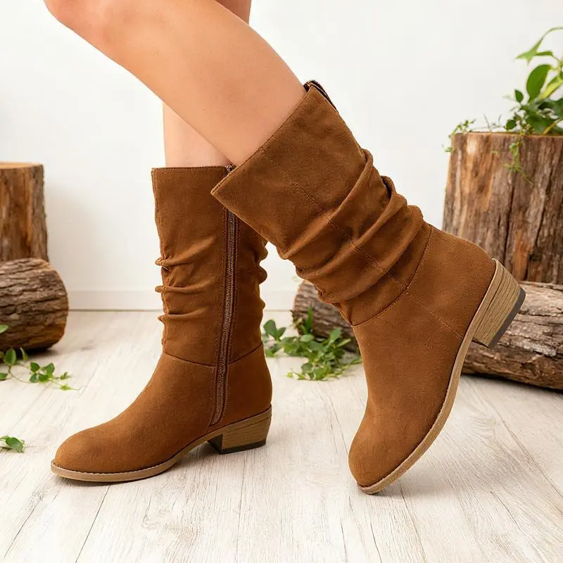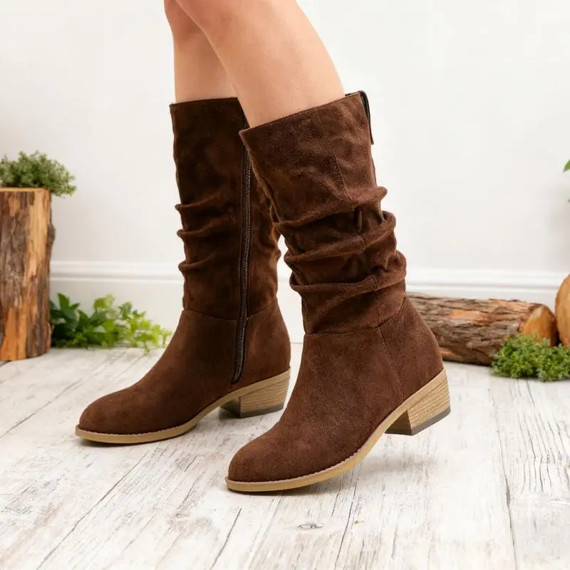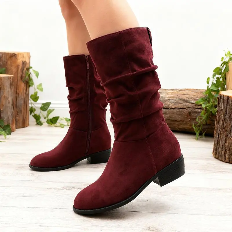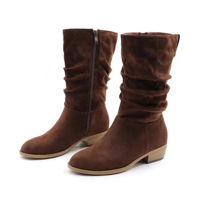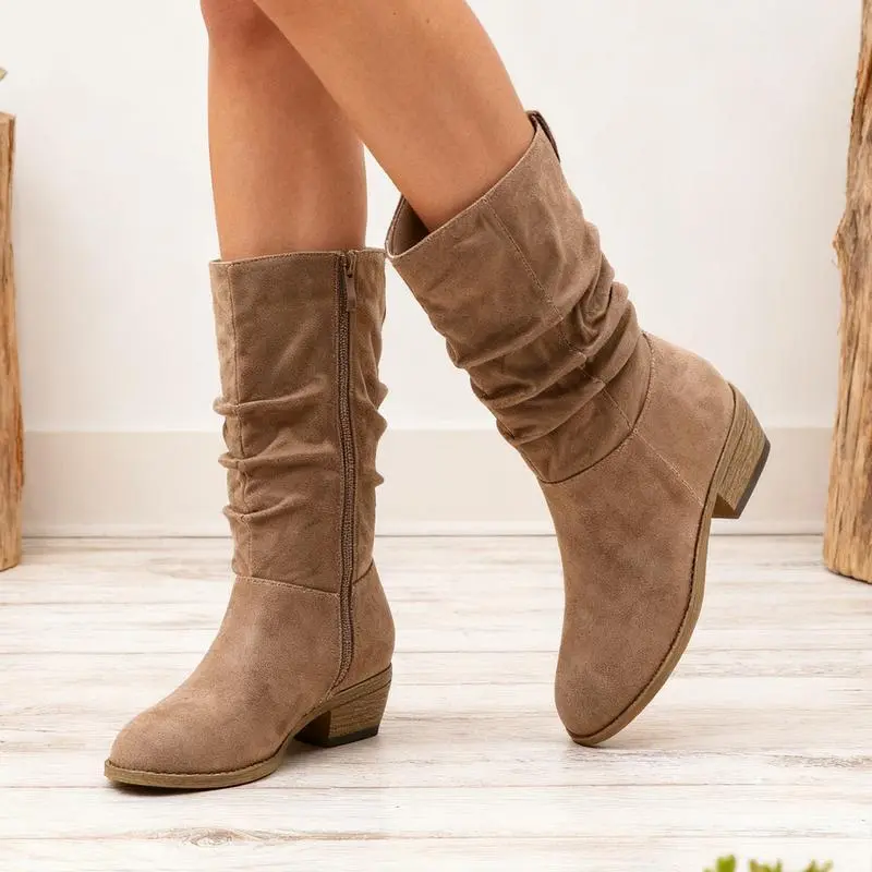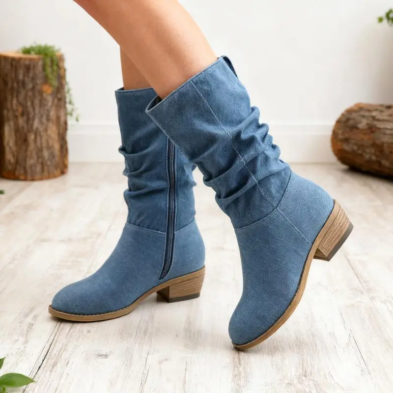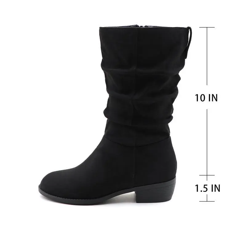 【Slouchy Boots】: The slouchy boots are made from premium suede leather or denim material, ensuring durability. The upper material is designed to be both stylish and resilient. The inner lining of the boots is crafted to provide comfort, reducing friction and ensuring a pleasant wearing experience. 【Mid-calf Boots】:The mid-calf boots come with a low chunky heel , providing a subtle lift without compromising on comfort. This makes them ideal for all-day wear. The heel height approximately 1.5 inches.Shaft height approximately 10 inches. 【Wide Calf Boots】: The women's boots have a wide calf and side zipper that you can wear easily, it can be match with any of your outfits, from fall to winter. 【Perfect Gift】:Suitable for daily wear, work, parties, and special events, these boots for women can seamlessly transition from day to night. A Perfect gift for women lady girl's birthday,Thanksgiving,Christmas,New Year and other holidays.