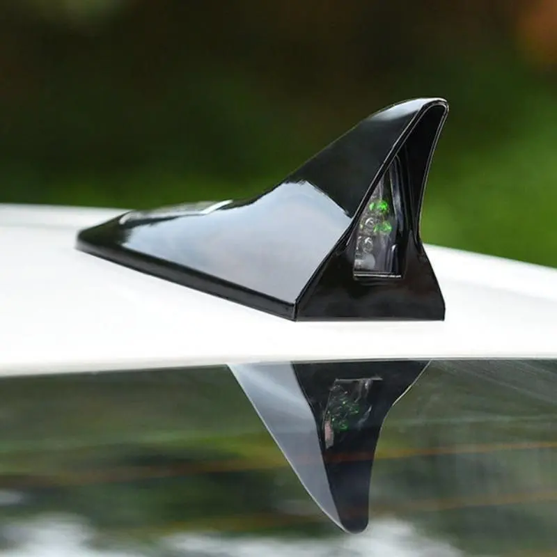 Solar Powered Shark Fin Design Car Antenna Topper, Anti Rear End Collision Roof Spoiler with Remote Control Warning Flashing Light, Car Accessories, Decoration