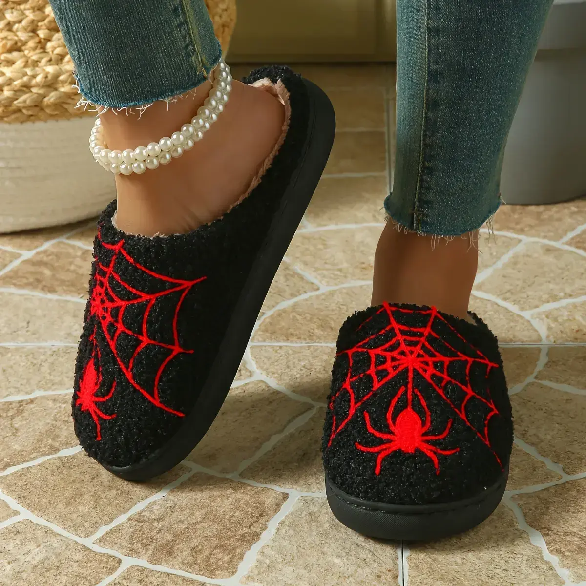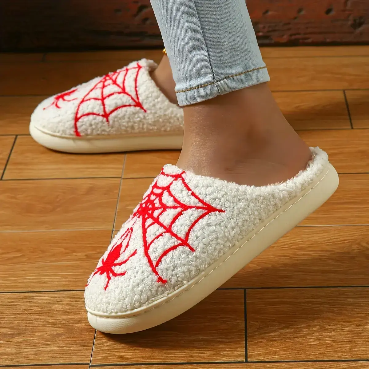 Men's Fashion Halloween Style Spider Web Pattern Hollow Slippers, Comfortable and Non-Slip Warm Leisure Slippers, Men's Novelty Slippers