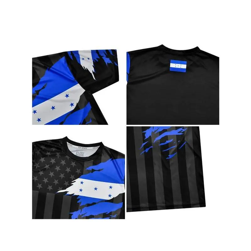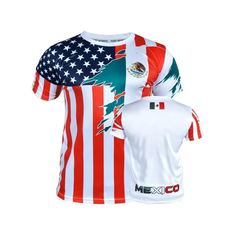 【Unique Print】: Featuring a blend of flags from Mexico, Guatemala, Honduras, El Salvador, and the USA, this jersey showcases a distinctive ethnic pattern. 【Moderate Thickness】: Crafted from moderate thickness fabric, this jersey provides a balanced feel, offering durability and breathability throughout the seasons. 【Fitted Cut】: Designed with a fitted silhouette, this jersey contours to the body while allowing ease of movement for various activities. 【Long Length】: The long clothing length adds an extra layer for coverage, suitable for both athletic and casual wear in any season. 【Diverse Patterns】: Incorporating ethnic patterns, maps, ombres, and stars, this jersey features an artistic array that appeals to a wide audience.