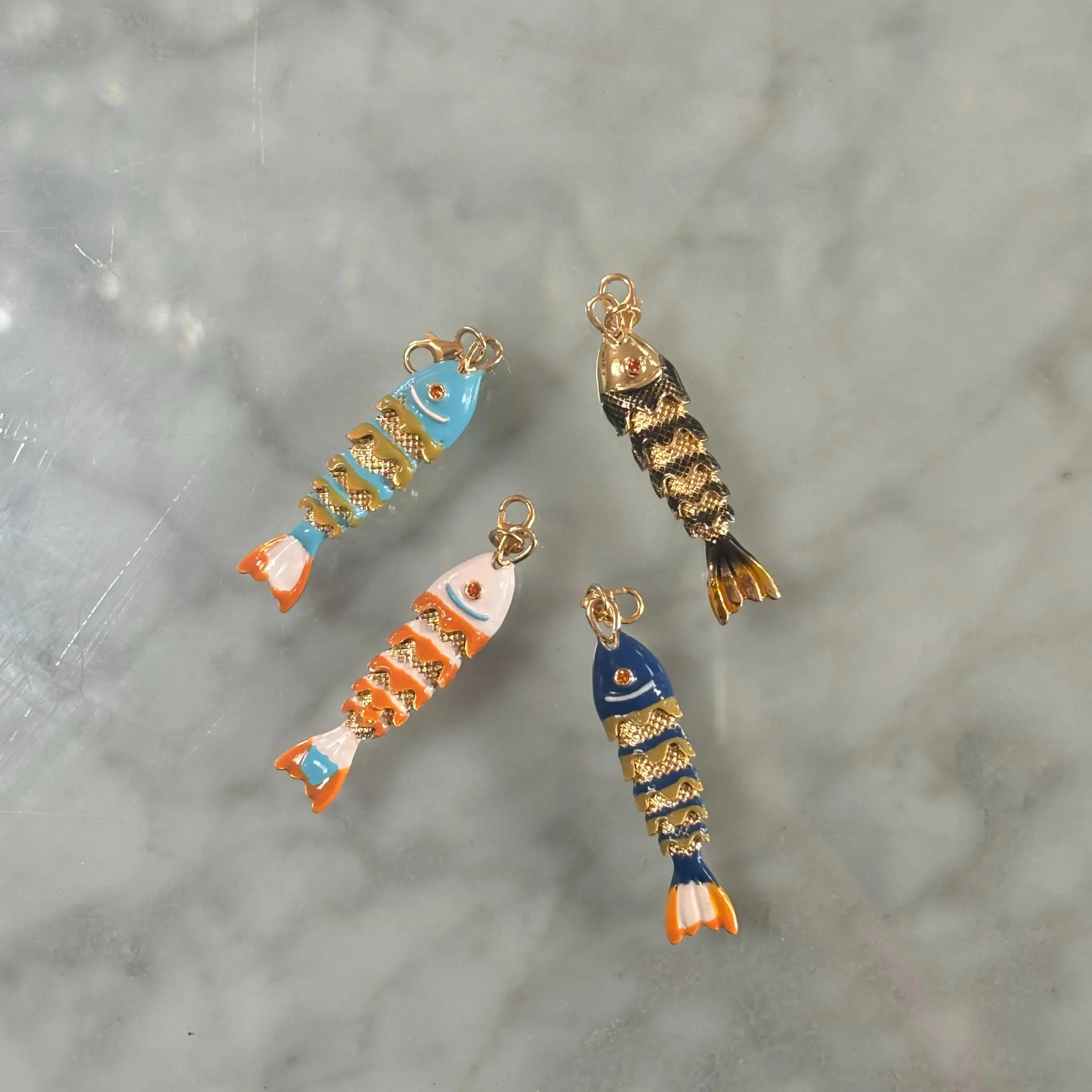 Protect Your Peace Solo Fish Charms Gold-Colored with Intricate Scales in Turquoise Orange Indigo Black & Green Clip-On Clasp for Versatile JewelryGift