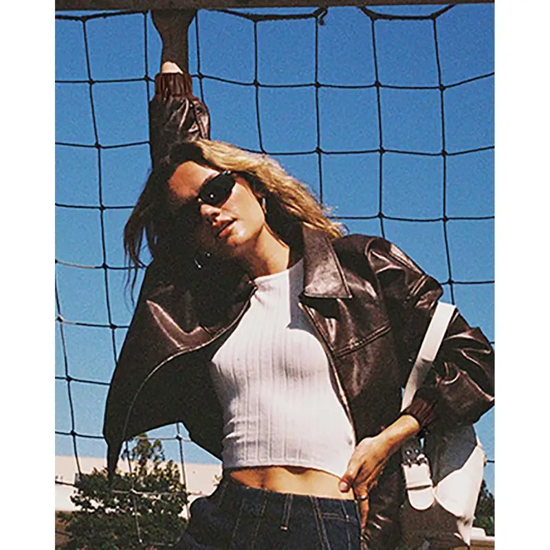 Danedvi Womens Leather Jacket Oversized Faux Casual Zip Up Bomber Motorcycle Jackect Trendy Fall Winter Clothes S-XXL