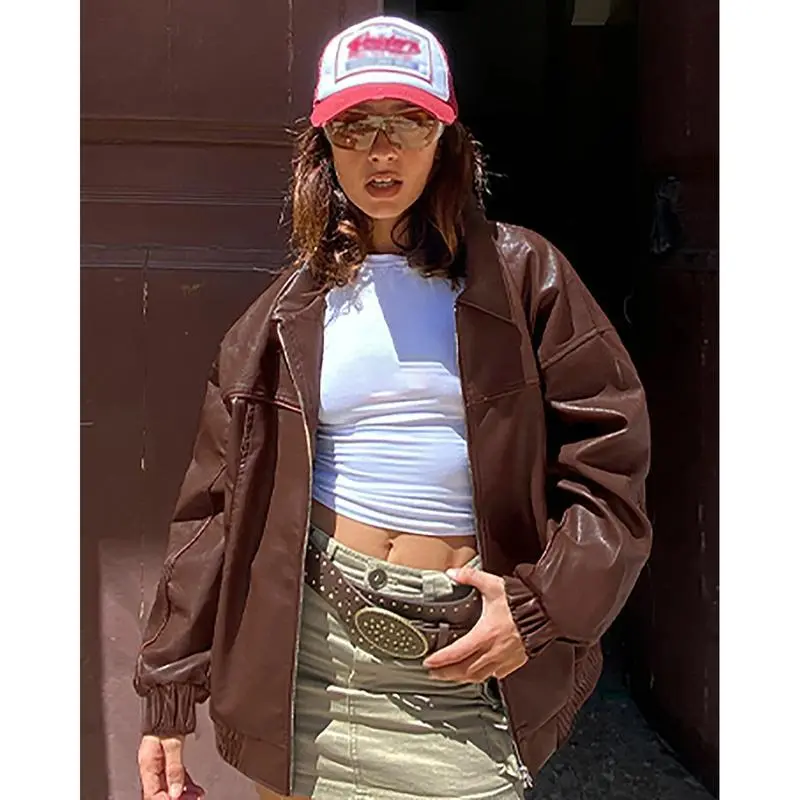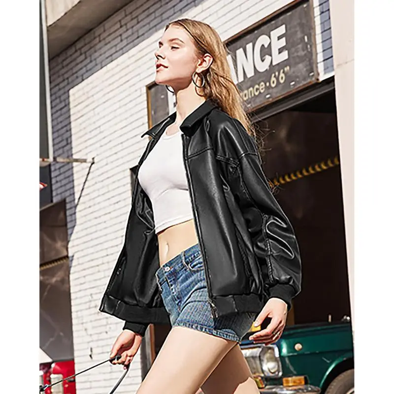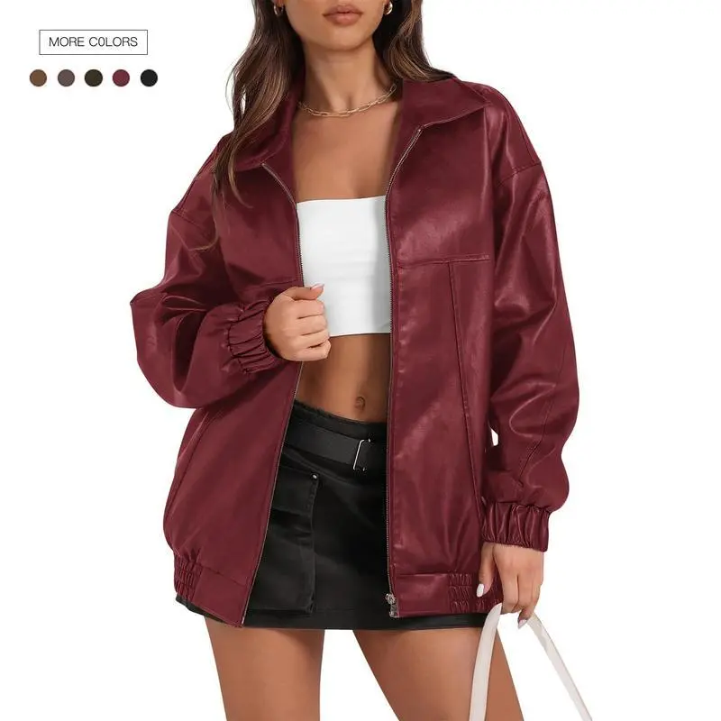 Danedvi Womens Leather Jacket Oversized Faux Casual Zip Up Bomber Motorcycle Jackect Trendy Fall Winter Clothes S-XXLGift