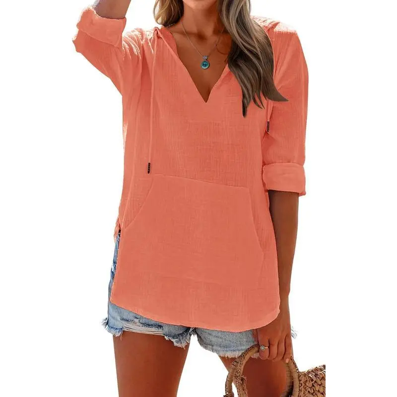 Lightweight and loose style makes it great for a variety of activities Ladies Summer Sexy V Neck Tunic Beach Shirts with Kangaroo Pocket Suitable for beach nights, vacation, daily wear, work, outdoor, school, shopping, dating and exercise 2024 Trendy Hoodies Sweatshirt with Drawstring Tie Beach Cover Ups It's A Must-Have in Your Summer Wardrobe Black/Blue/Green/Grey/Khaki/Navy Blue/Pink/Sky Blue/White/Wine Red/Yellow/Orange/Red Providing you a pleasing wearing experience 100% Cotton. It's Super Soft, Breathable, Lightweight and Comfortable We strongly suggest that you have your bodymeasurements taken first and then refer to our size chart before ordering All measurements are approximations products may very slightly