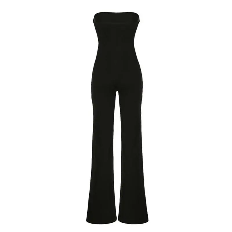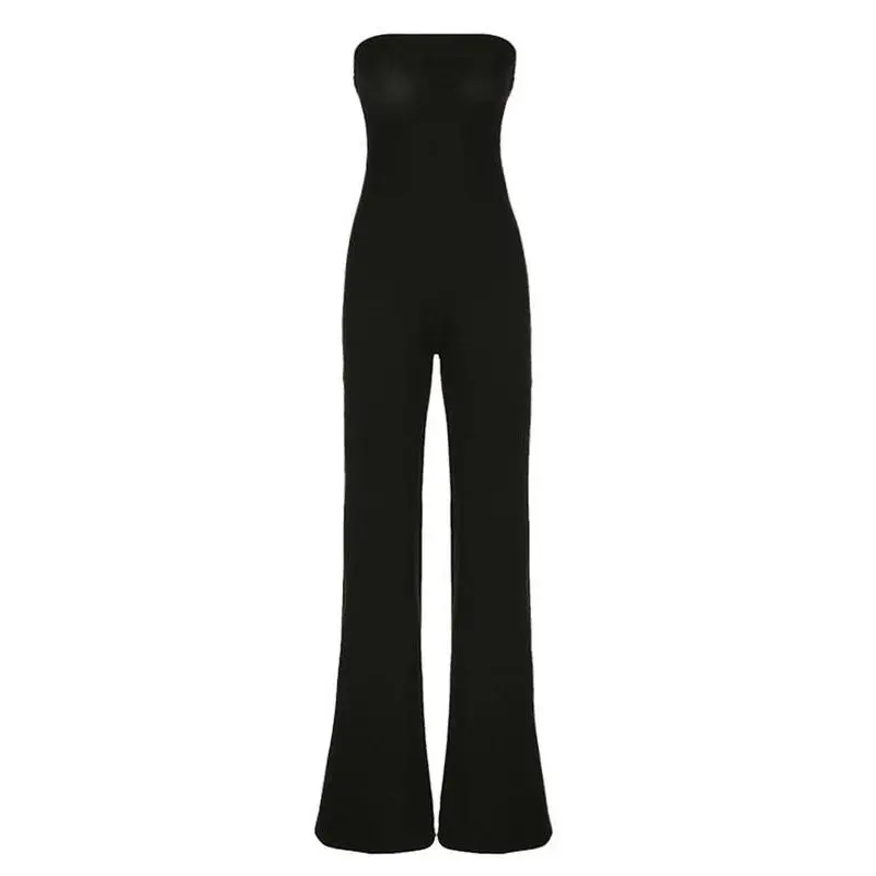 ��Flare Leg Cut��: Features a unique flare leg cut that enhances movement while offering a fashionable silhouette for various occasions. ��Fitted Silhouette��: The fitted waist design creates a flattering shape while ensuring the jumpsuit stays in place for comfortable wear. ��Strapless Design��: The strapless construction offers breathability, making it suitable for all seasons and easy layering when needed.