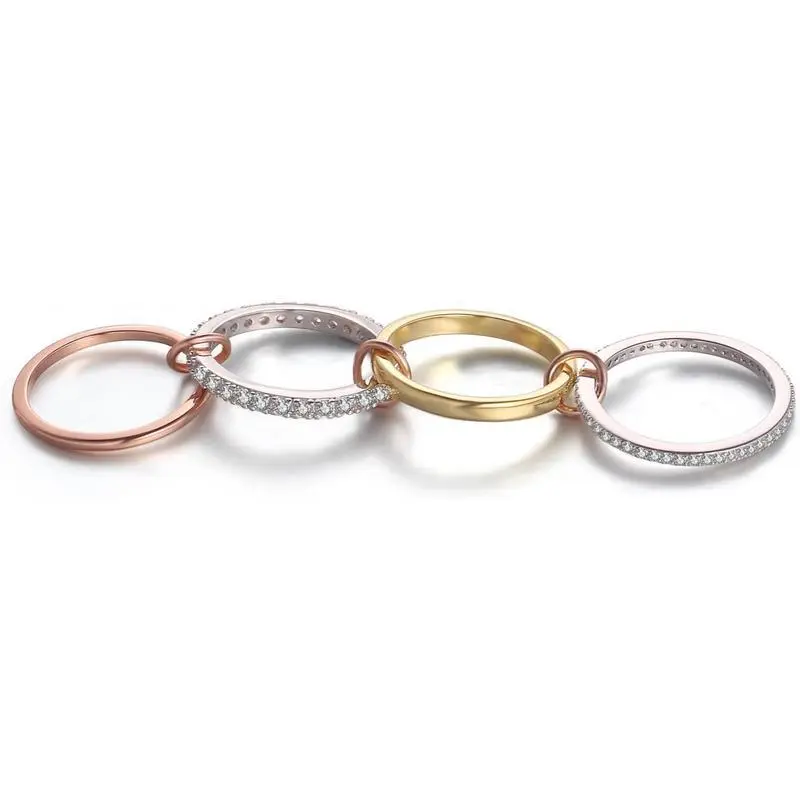 Metal typeSterling Silver Gem typeCubic Zirconia About this item Stunning 4-Piece Stackable Ring Set: This elegant 18k gold-plated stackable ring set features stunning combinations of rose gold, sterling silver, and cubic zirconia (CZ) bands. With a sleek and minimalist design, each ring can be worn independently or stacked together for personalized style. Perfect for women who love timeless, chic jewelry. Versatile & Customizable Jewelry: The CZ gemstone bands add a sparkling touch to this ring set, making it ideal for layering and customization. You can mix and match rings to fit your unique style. Whether dressing up or down, these rings offer the perfect blend of modern elegance and versatility for any occasion. Ideal & Thoughtful Gift: Whether it��s a special occasion like a birthday, Christmas, anniversary, or graduation, or simply because, these rings make an excellent gift for girlfriends, wives, moms, and daughters. A sophisticated gift that expresses love, style, and thoughtfulness. Perfect as a luxury holiday gift. Non-Tarnish Material: Crafted with 18K gold plating and premium-quality materials, these rings are designed to resist tarnishing, suitable for everyone. Enjoy long-lasting shine and durability without fear of skin irritation. Sparkling, Minimalist Design: These stackable rings are designed to elevate any outfit with a touch of effortless sophistication. Wear them individually for a minimalistic look or stack them for a bold statement piece that will catch attention at any event, beach vacation, or casual outing.