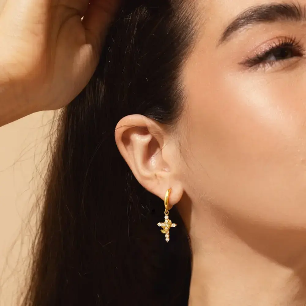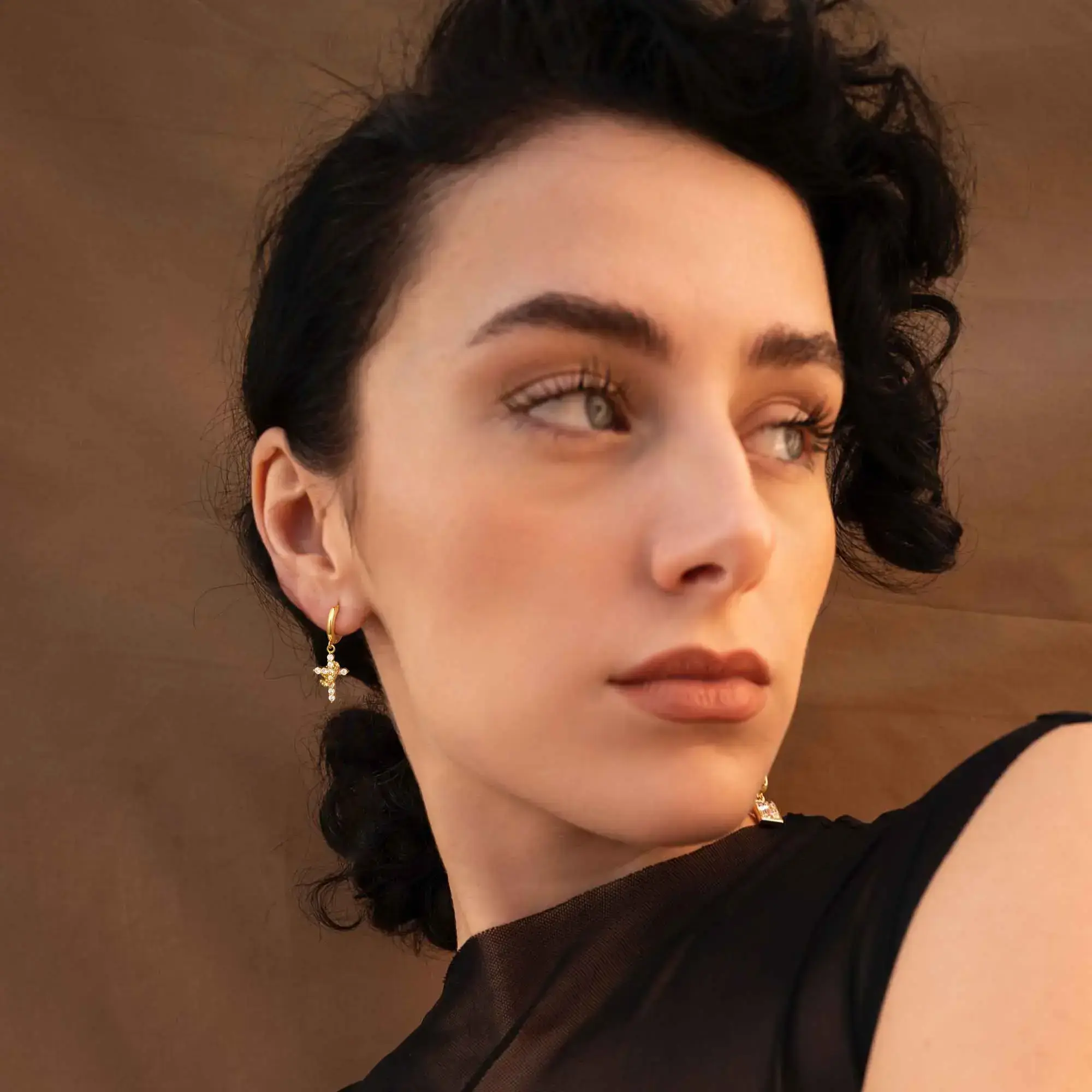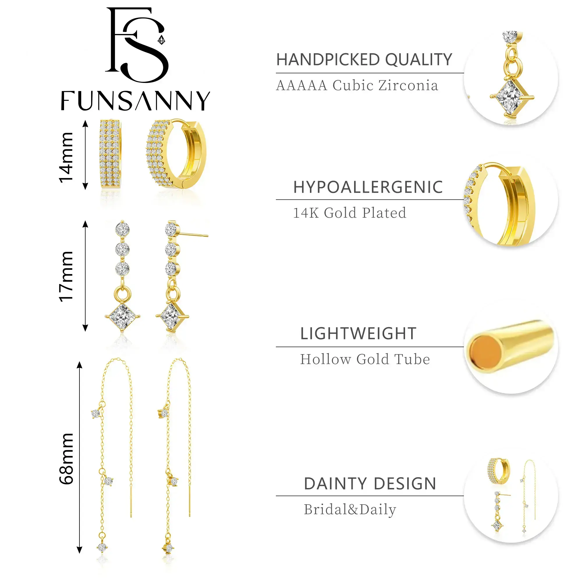 Gold Crown Cross Earrings Chain Earrings 3/4 Pairs Dangling Delicate SL/GD Hoop Earrings Set Hypoallergenic for Christmas