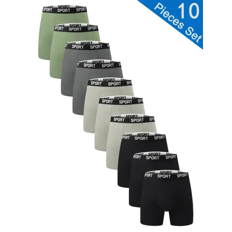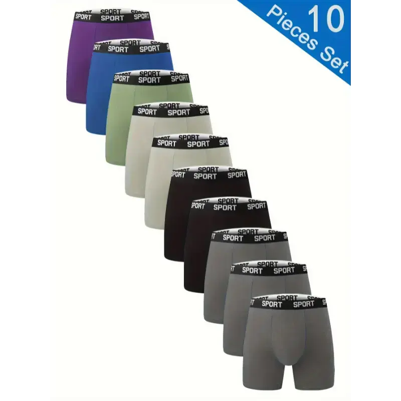 10-Pack Men'S Athletic Boxer Briefs - High Stretch Knit Fabric, Solid Color, Quick-Dry, Moisture-Wicking, Elastic Waistband, Polyester 95% Spandex 5% - Sport & Casual Wear