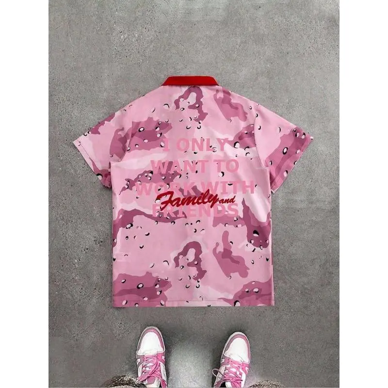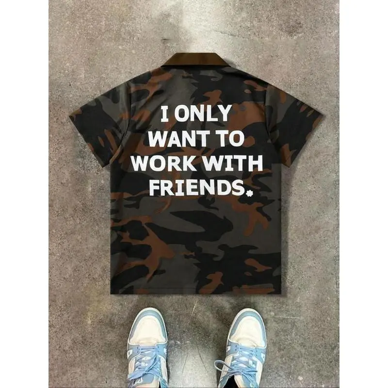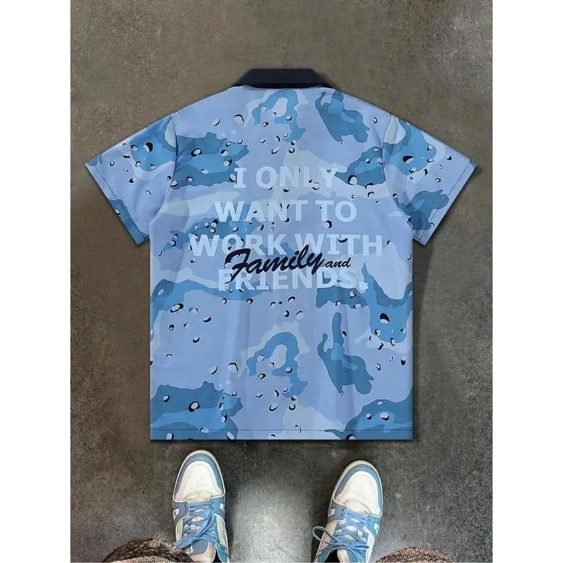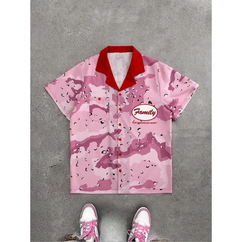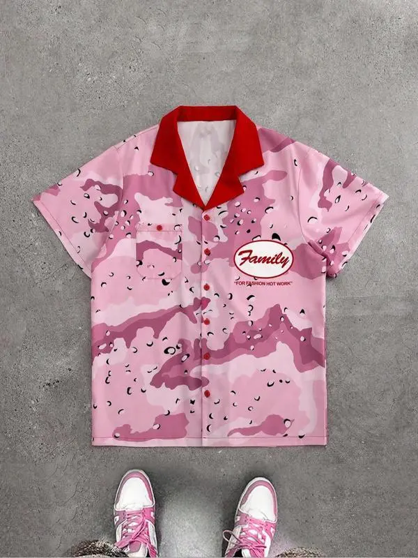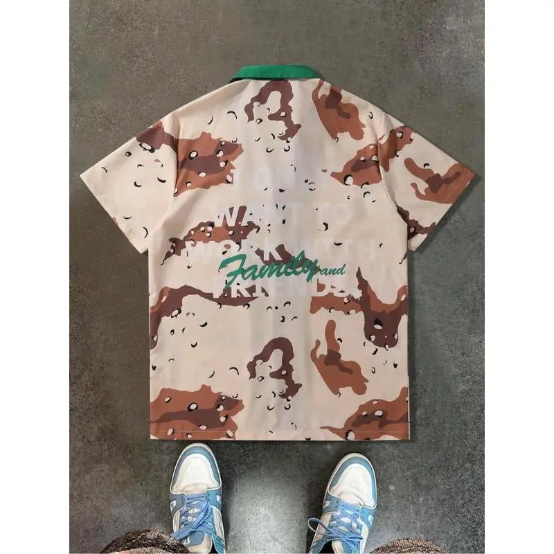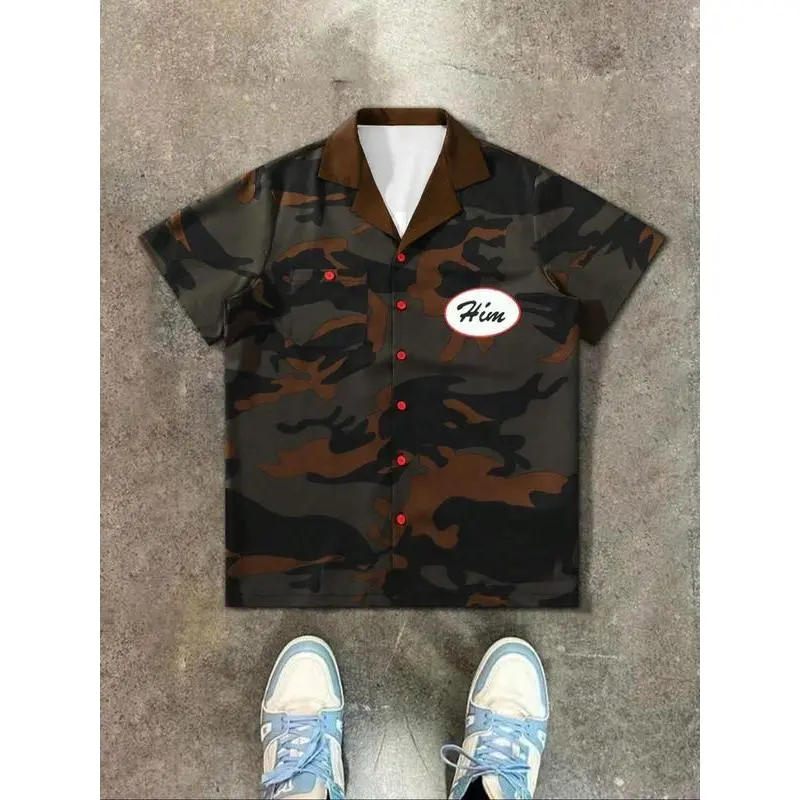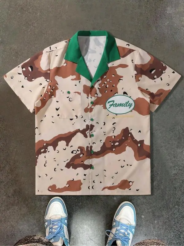 Men's Regular Fit Camo Print Letter Patched Pocket Short Sleeve Shirt, Casual Comfy Top for Summer, Fashion Men's Clothes for Daily Wear