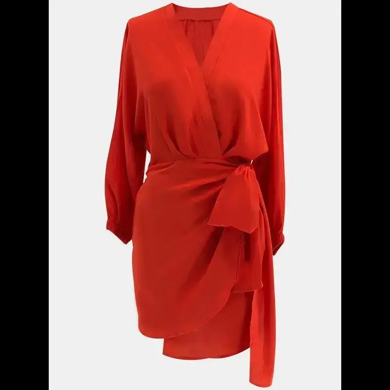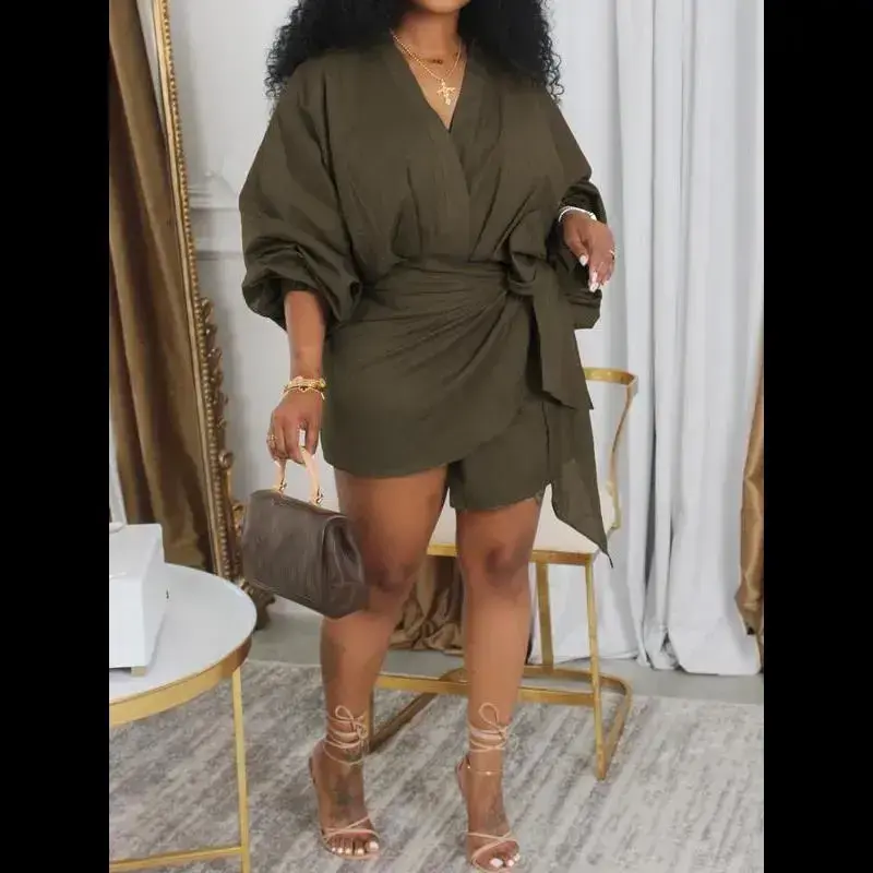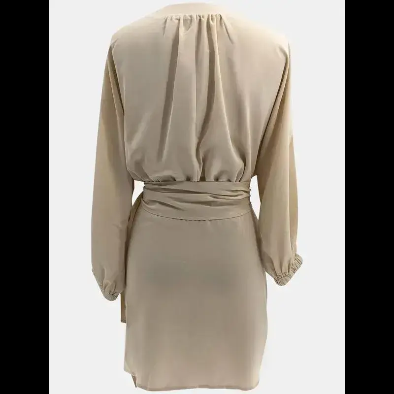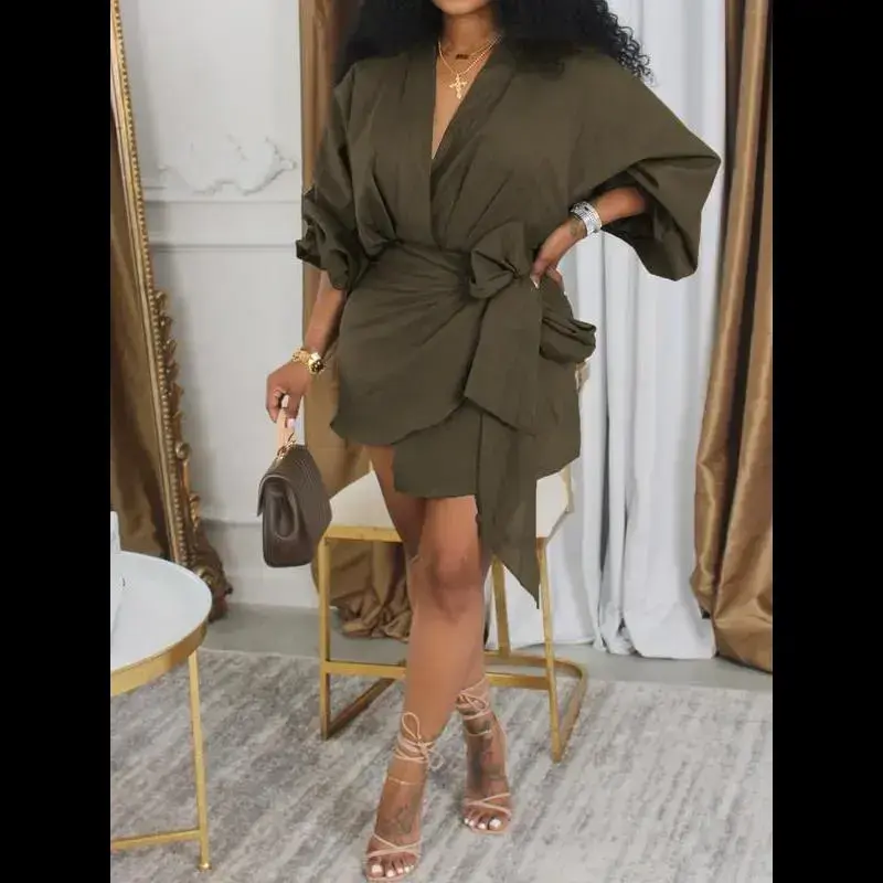 Women's Plain Tie Side Wrap V Neck Dress, Chic Elegant Formal Bishop Sleeve Mini Dress for Party Holiday Wedding Guest, Fall Dresses, Ladies Clothes for All Seasons, Womenswear
