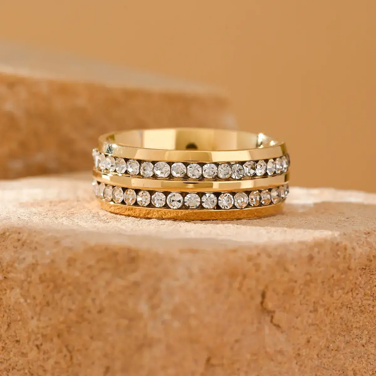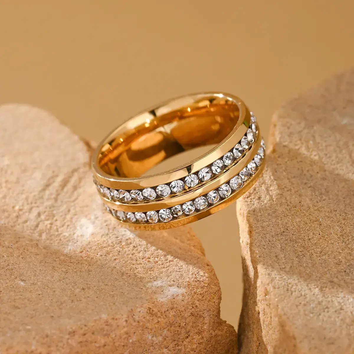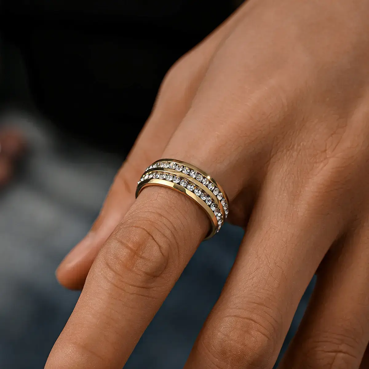 High Quality Men's Rings, Classic Luxury Double Row Synthetic Zircon Stainless Steel Rings for Weddings, Banquets, Parties, Fashionable and Trendy Men's Accessories