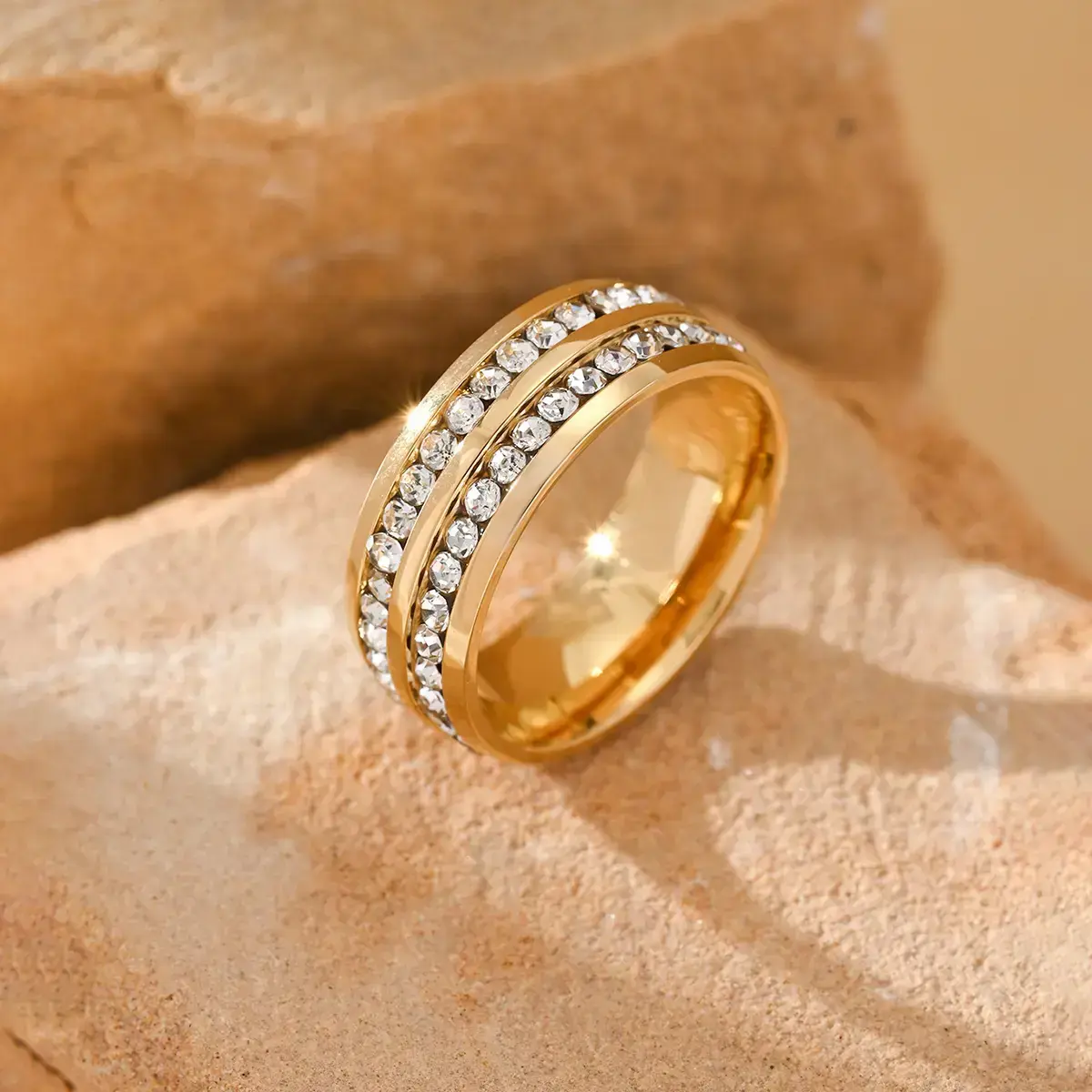 High Quality Men's Rings, Classic Luxury Double Row Synthetic Zircon Stainless Steel Rings for Weddings, Banquets, Parties, Fashionable and Trendy Men's AccessoriesGift