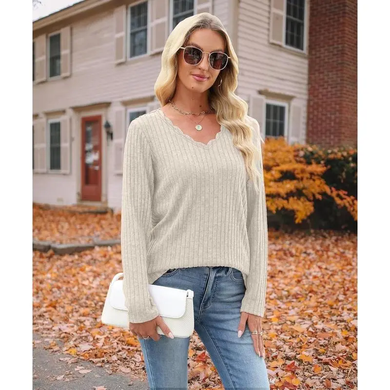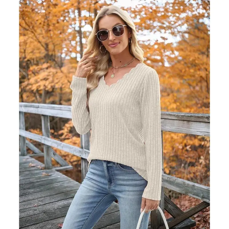 🌟 Womens Sweaters Casual Long Sleeve V Neck Lightweight Tunic Pullover Sweater Tops Knitwear Womenswear 🌟 Timeless Elegance and Cozy Comfort Discover timeless elegance and cozy comfort. Inspired by French chic, our petal-shaped V-neck sweater blends softness and subtle detail. It adds effortless charm to your everyday look. 🌸 Stand out with the delicate V-neckline that flatters your neckline and adds a touch of feminine sophistication. Dress it up or down with jeans, skirts, or blazers. Perfect for work, coffee dates, weekend strolls, or casual gatherings. 🌟 Versatile and Stylish One sweater, endless outfits. Switch up your look for any mood or moment. From fabric to stitching, every detail is crafted to deliver quality, comfort, and style you'll love to wear again and again. 🌼