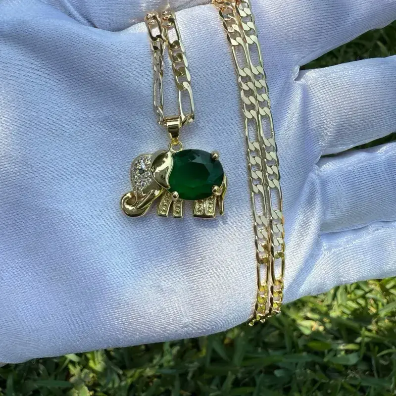 ✨ Symbol of Strength and Wisdom ✨ The Elephant Strength Wisdom Necklace features a gold-tone elephant pendant with a green gemstone design. It's believed that those who wear it will be abundant in wisdom and strength, along with protection. This meaningful piece is perfect for those who appreciate cultural symbolism. * * * 🔗 Elegant Design and Chain 🔗 This necklace comes with a 20” Figaro chain, ensuring a classic and timeless look. The Figaro chain adds a touch of sophistication to the overall design. The combination of the elephant pendant and the green gemstone makes it a standout accessory for any occasion.