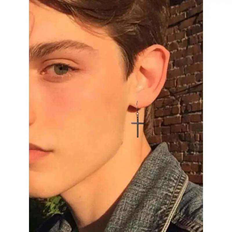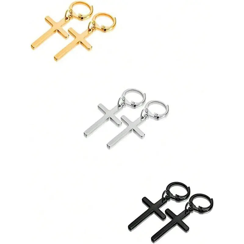 Street Style Cross Design Dangle Earrings for Gift, 6pcs Fashion Stainless Steel Ear Piercing Jewelry for Women and Men, Casual All-match Accessories for Party, Daily Wear