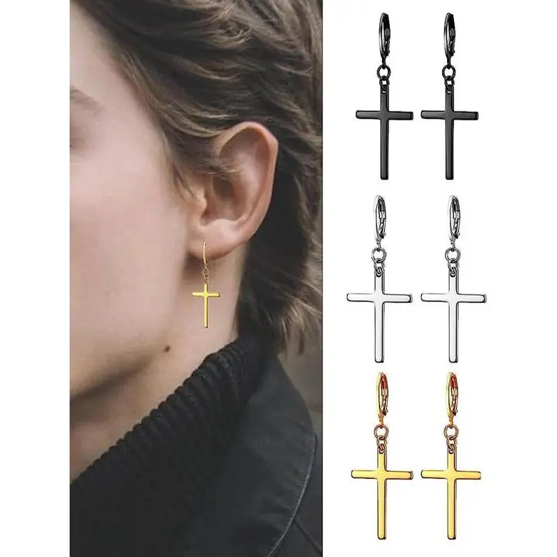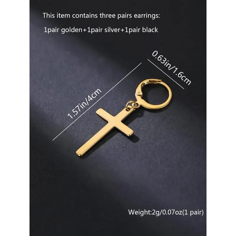 Street Style Cross Design Dangle Earrings for Gift, 6pcs Fashion Stainless Steel Ear Piercing Jewelry for Women and Men, Casual All-match Accessories for Party, Daily WearGift