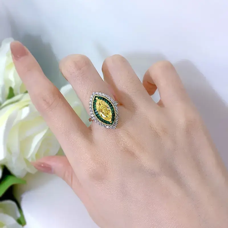 The S925 Sterling Silver Colorful Marquise-Cut Ring is a perfect blend of individuality and luxury. Featuring a brilliant marquise-cut high-carbon stone, this ring radiates refined elegance and modern charm. The vibrant hues add a touch of bold sophistication, making it a standout piece for daily wear or special occasions. Crafted from high-quality S925 sterling silver, this ring is hypoallergenic, tarnish-resistant, and skin-friendly, ensuring lasting beauty and comfort. Whether worn alone for a minimalist statement or stacked for a trendy layered look, this ring is a must-have in every jewelry collection. This bold and elegant ring pairs perfectly with both casual and formal outfits. Wear it solo for a refined touch or stack it with other rings for a trendy, layered look. Whether you're attending a social event, dressing up for work, or simply elevating your everyday style, this ring adds a sophisticated sparkle to any outfit. A Unique Expression of Modern Elegance The S925 Sterling Silver Colorful Marquise-Cut Ring is designed for women who embrace confidence, beauty, and individuality.