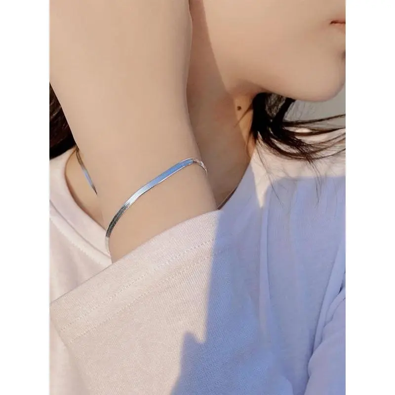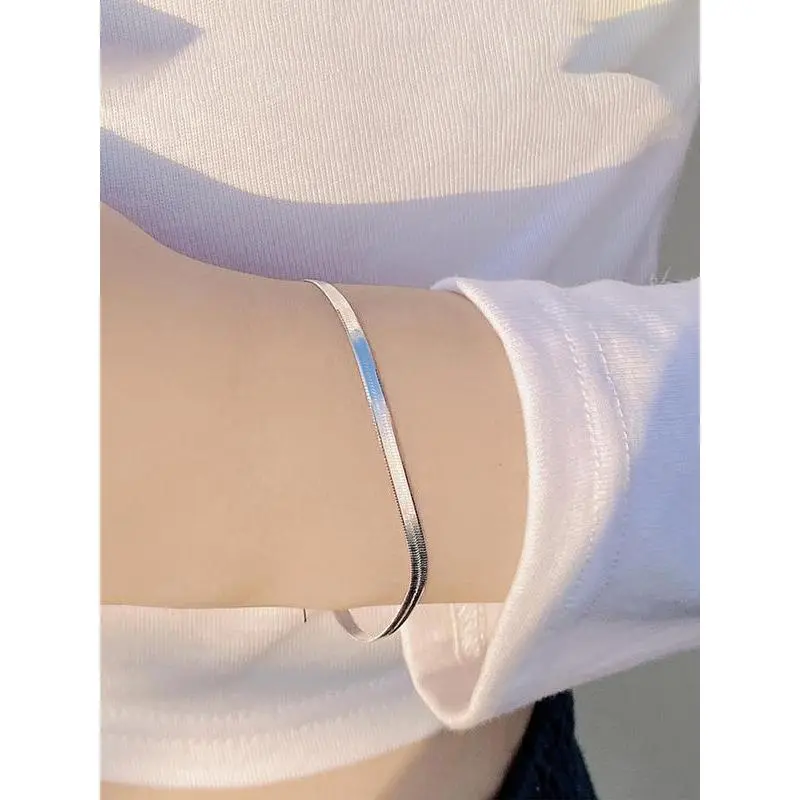 925 Sterling Silver Flat Snake Bone Chain Bracelet, Adjustable Bracelet for Women & Men, Trendy All-match & Exquisite Jewelry for Birthday Gift, Adjustable Link Bracelet