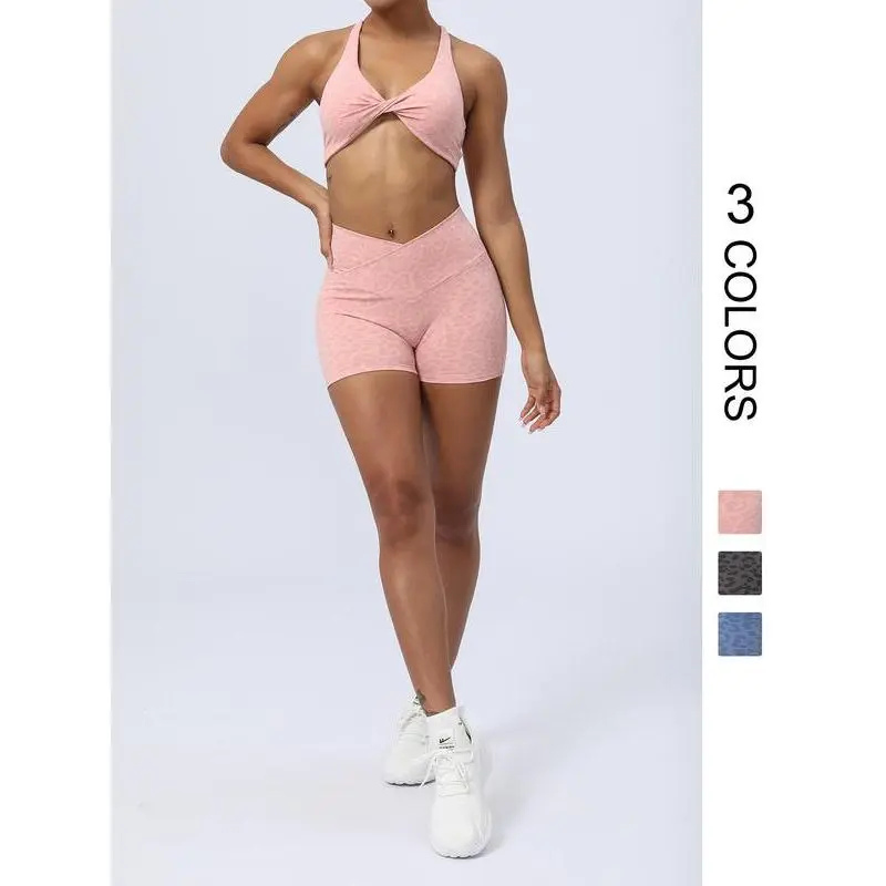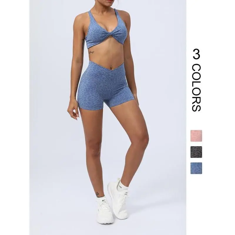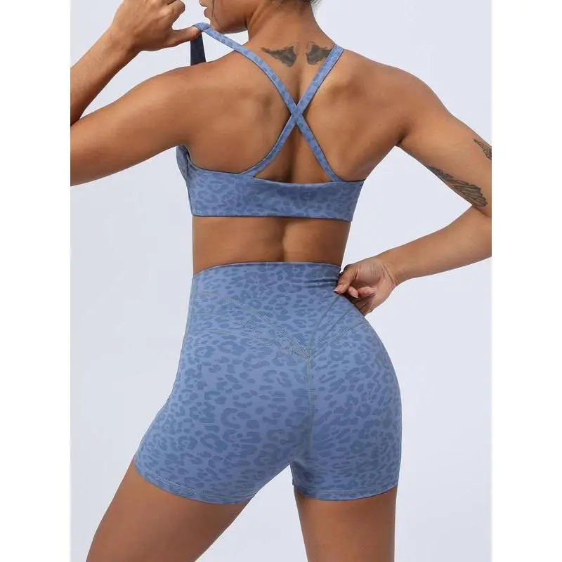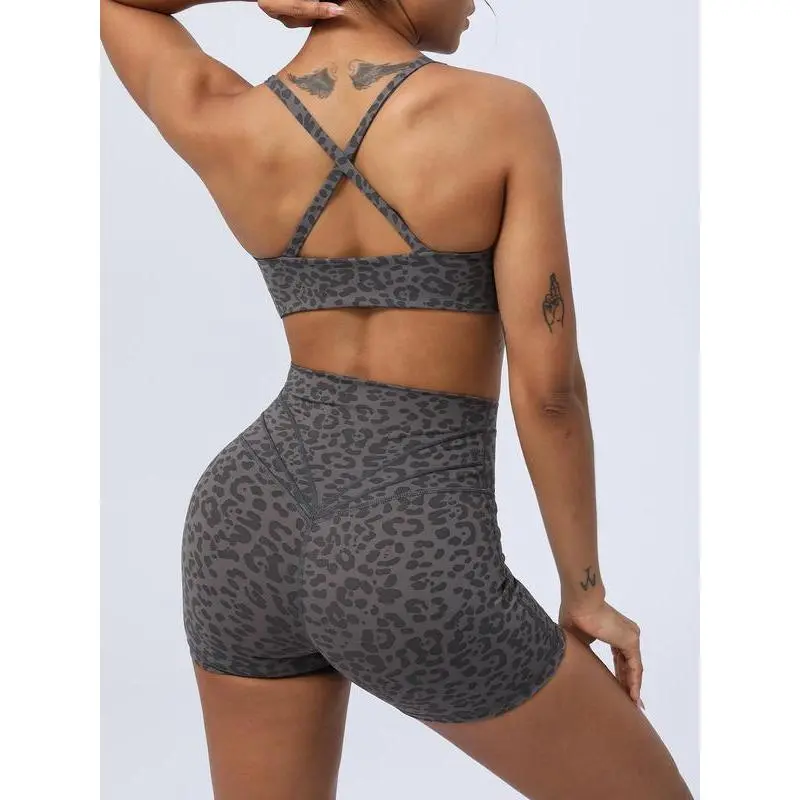 Women's Leopard Print Sports Bra & Shorts Set, Ladies Sportswear for Indoor Outdoor Wear
