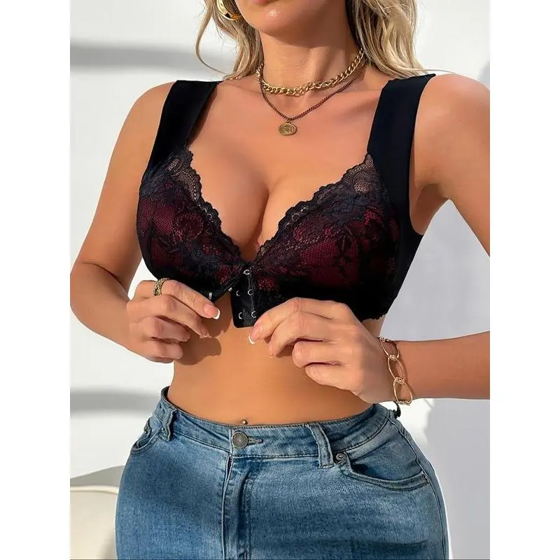 【Front Clasp】: Features a convenient front buckle closure, simplifying the process of putting on and taking off the bra. 【Lace Bralette】: Crafted from exquisite lace material, this bralette offers a delicate and feminine touch to your underwear collection. 【Medium Support】: Designed to provide medium support, ensuring a comfortable fit without compromising on style or shape. 【Full Coverage】: Offers full coverage cup size, providing ample support and containment while maintaining a polished appearance. 【Unlined Design】: Boasts an unlined construction, allowing for breathability and a lightweight feel that enhances wearability throughout the day.