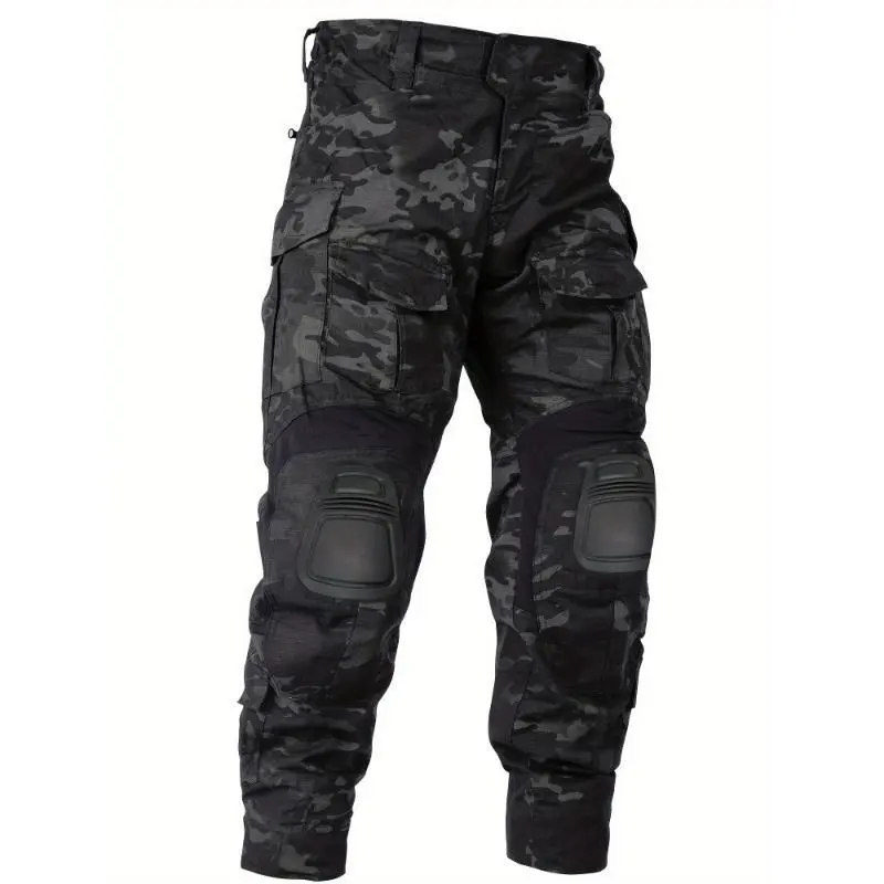 Men'S Outdoor Tactical Pants (with Knee Pads) Camouflage Overalls Waterproof Hiking Pants No Belt