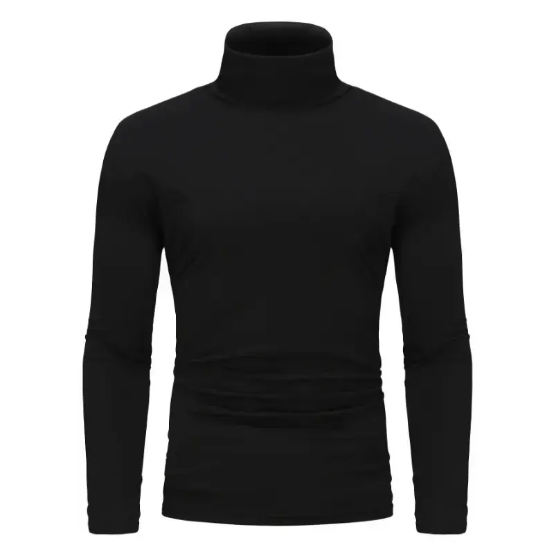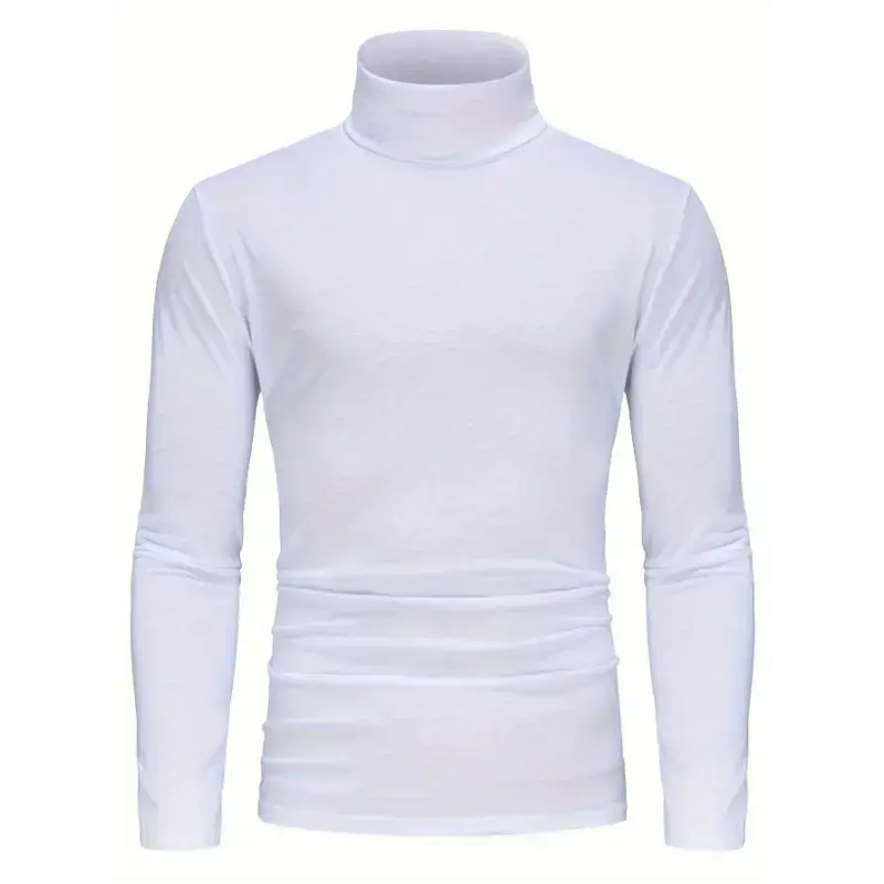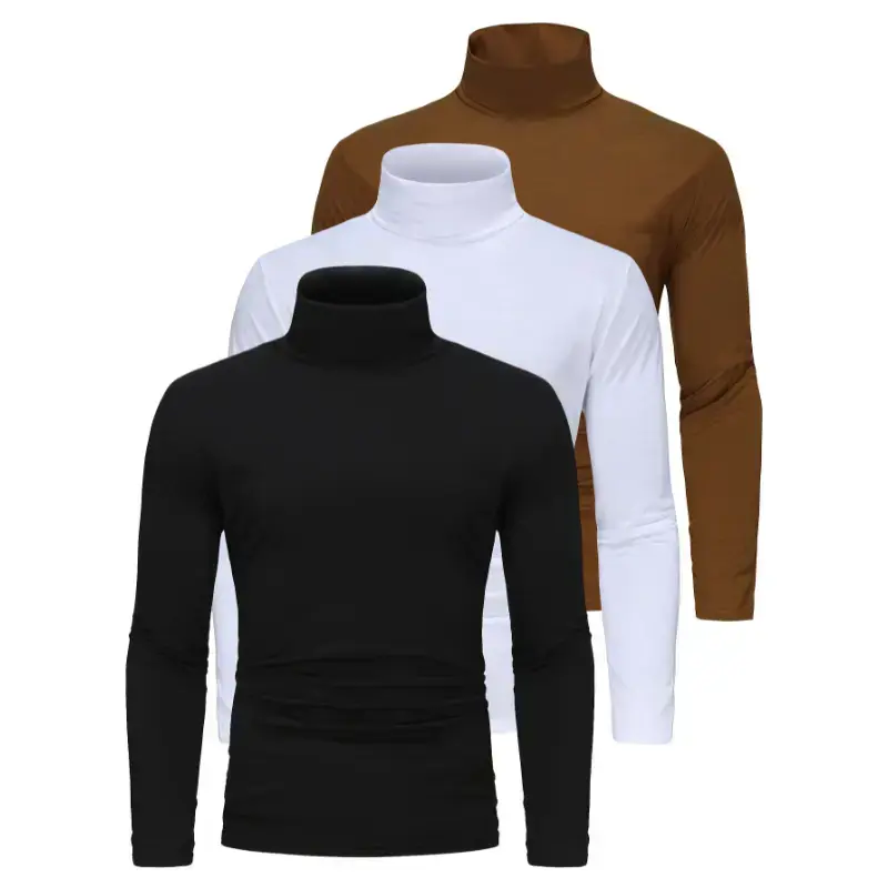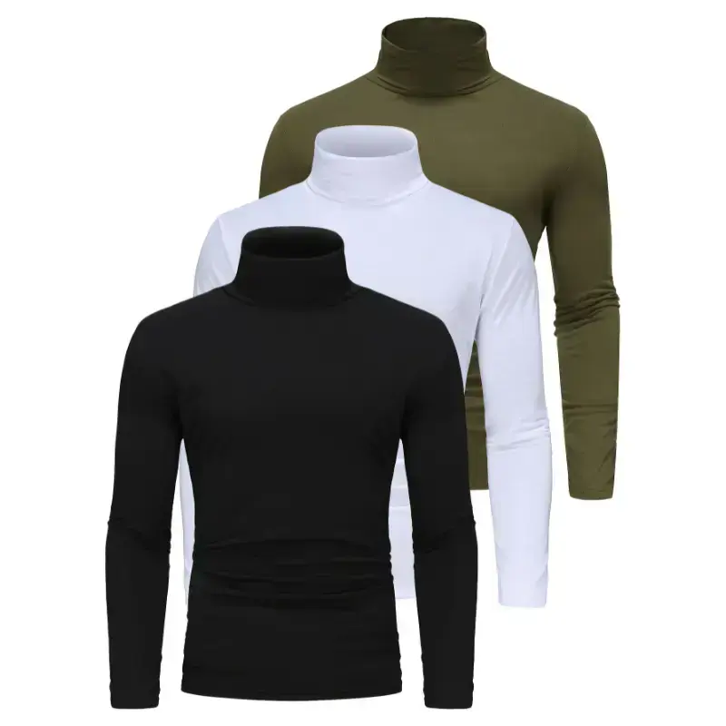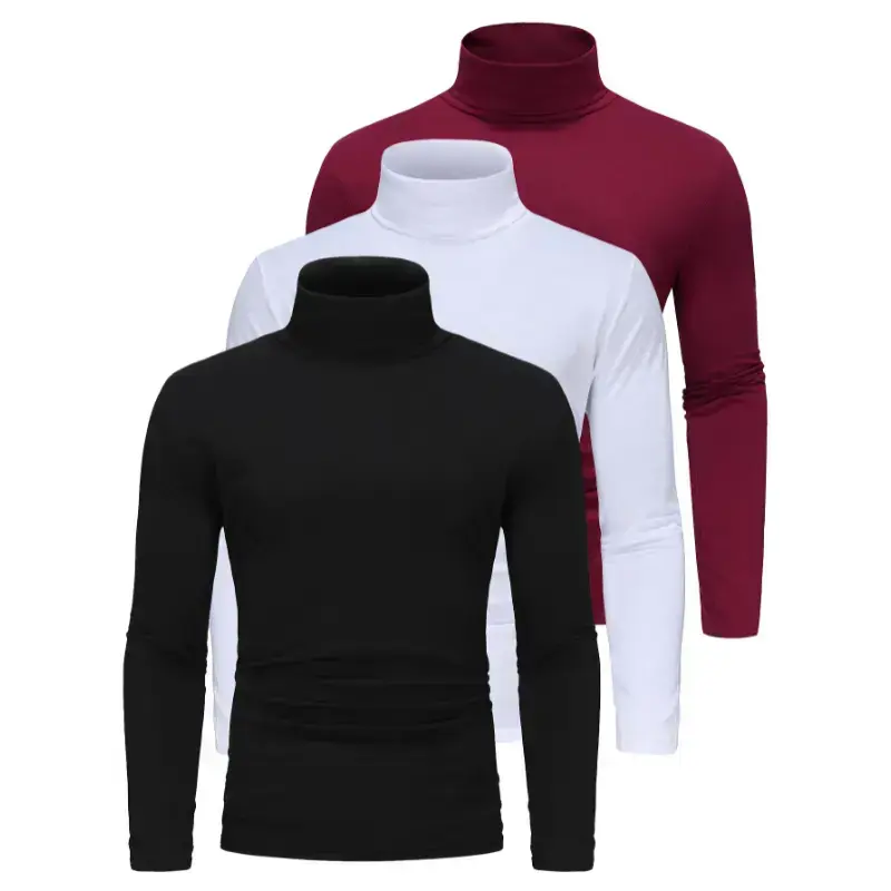 Long Sleeve Solid Color Stretch Knit 3-Pack Men's High Neck T-Shirts - Polyester Base Layer for Fall/Winter WarmthGift