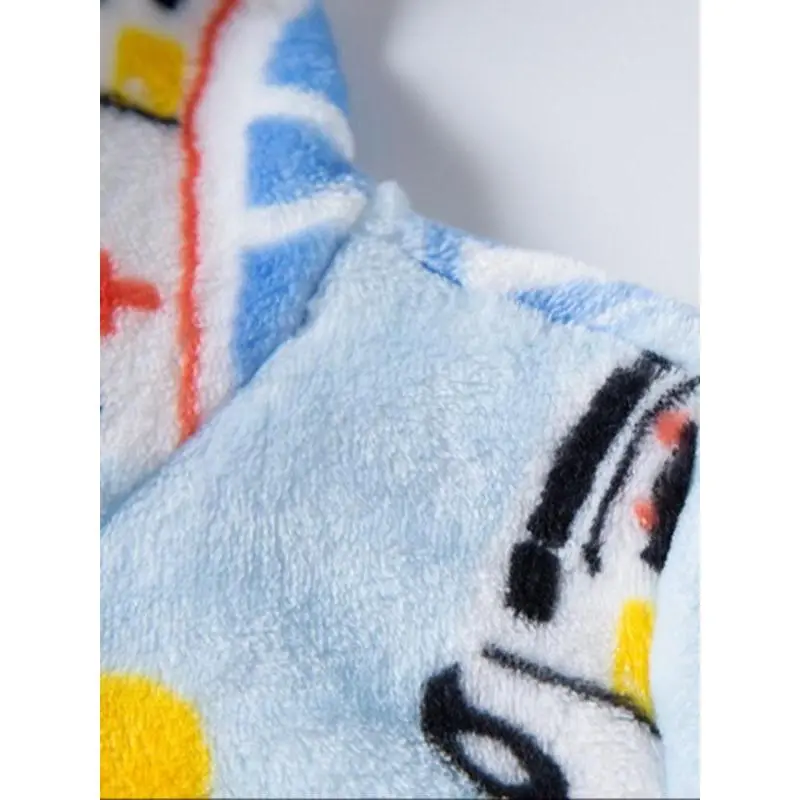Girls' Fashion Creative Car Print Hooded Bathrobe, Ultra-Soft Flannel Warm Sleepwear, Cute Cartoon Pajamas for Home Use