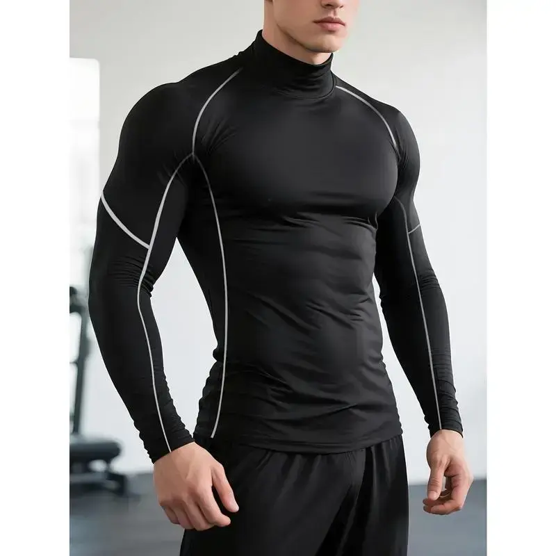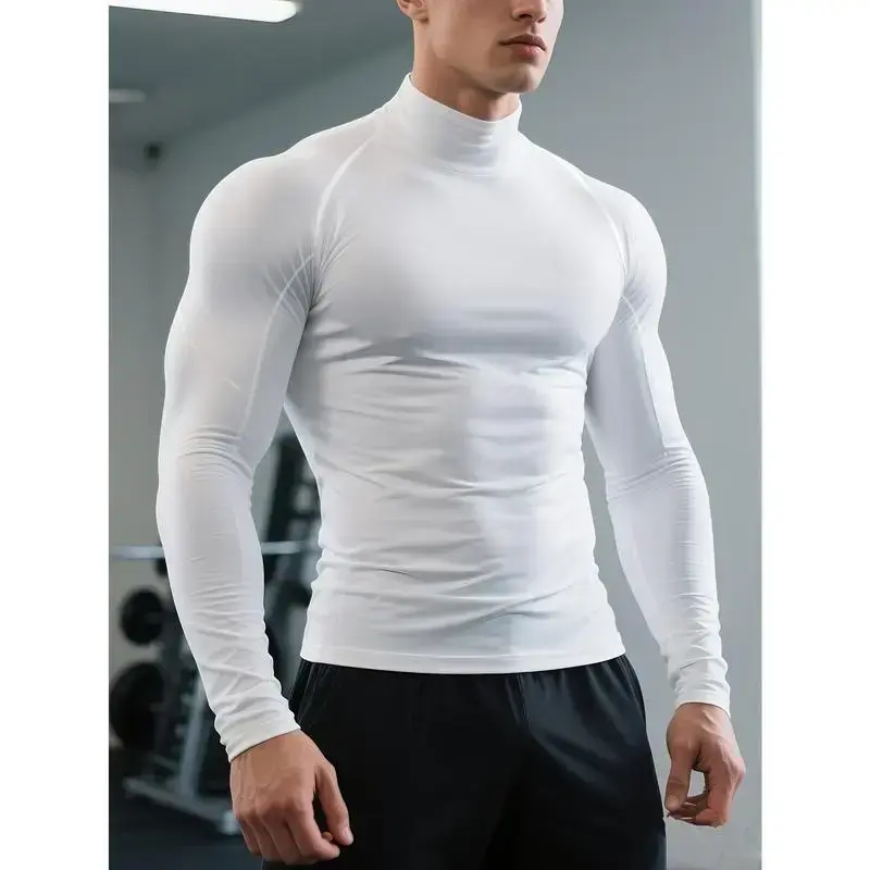 Men's Quick-Dry Stretch Fitness Shirt ✨ Perfect for All Seasons ✨ This high-neck, long-sleeve workout top is ideal for gym and boxing. It features a tight-fit design, ensuring comfort and performance. The moisture-wicking fabric keeps you dry during intense workouts. Available in white, black, and deep grey.