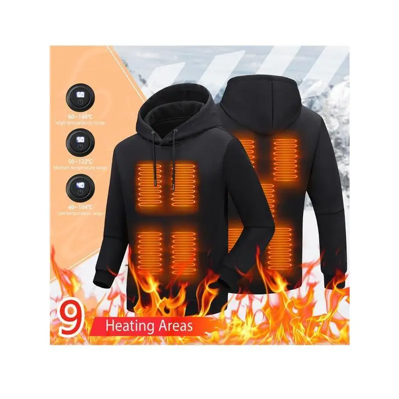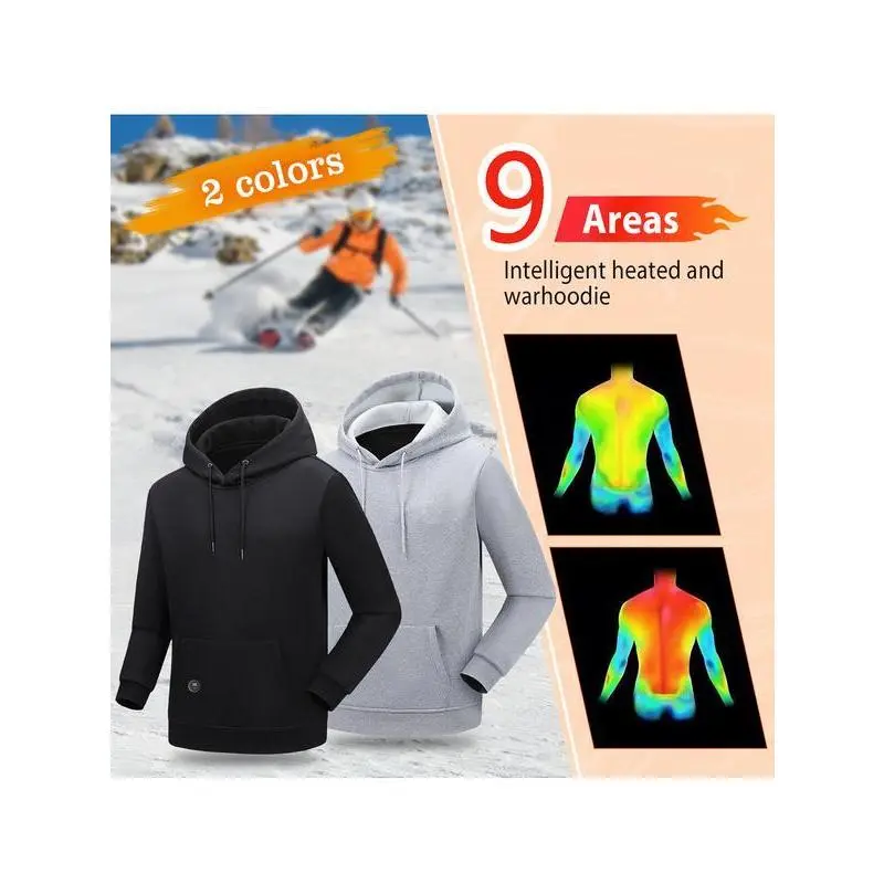 Smart Heating Hoodie With 9 Heating Zones, Quick USB Charging, Adjustable Temperature, Casual Solid Color, Long Sleeve, Woven Polyester, Regular Fit, Hooded Sweatshirt For Men - Fashionable Practical Design (Batteries Not Included)Gift