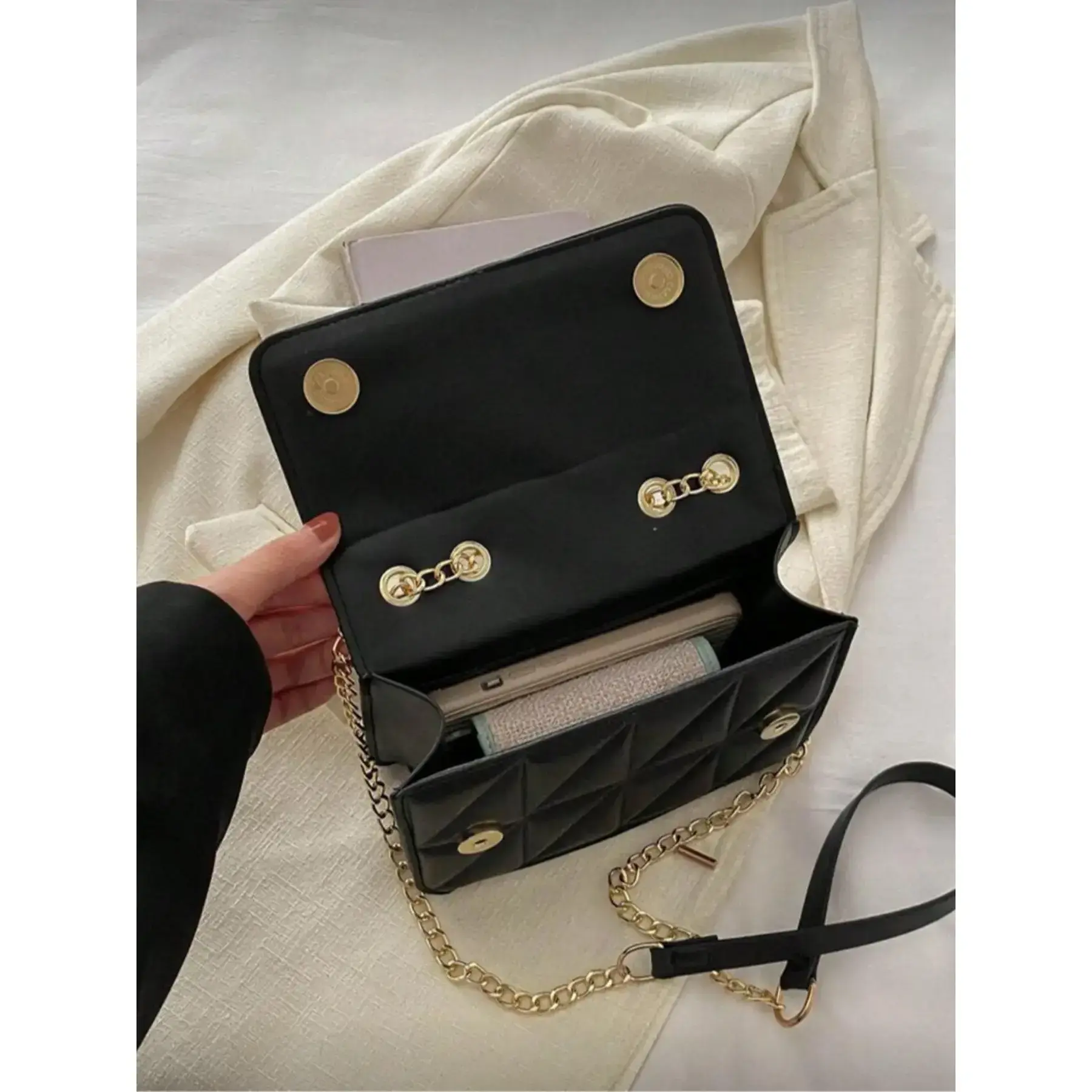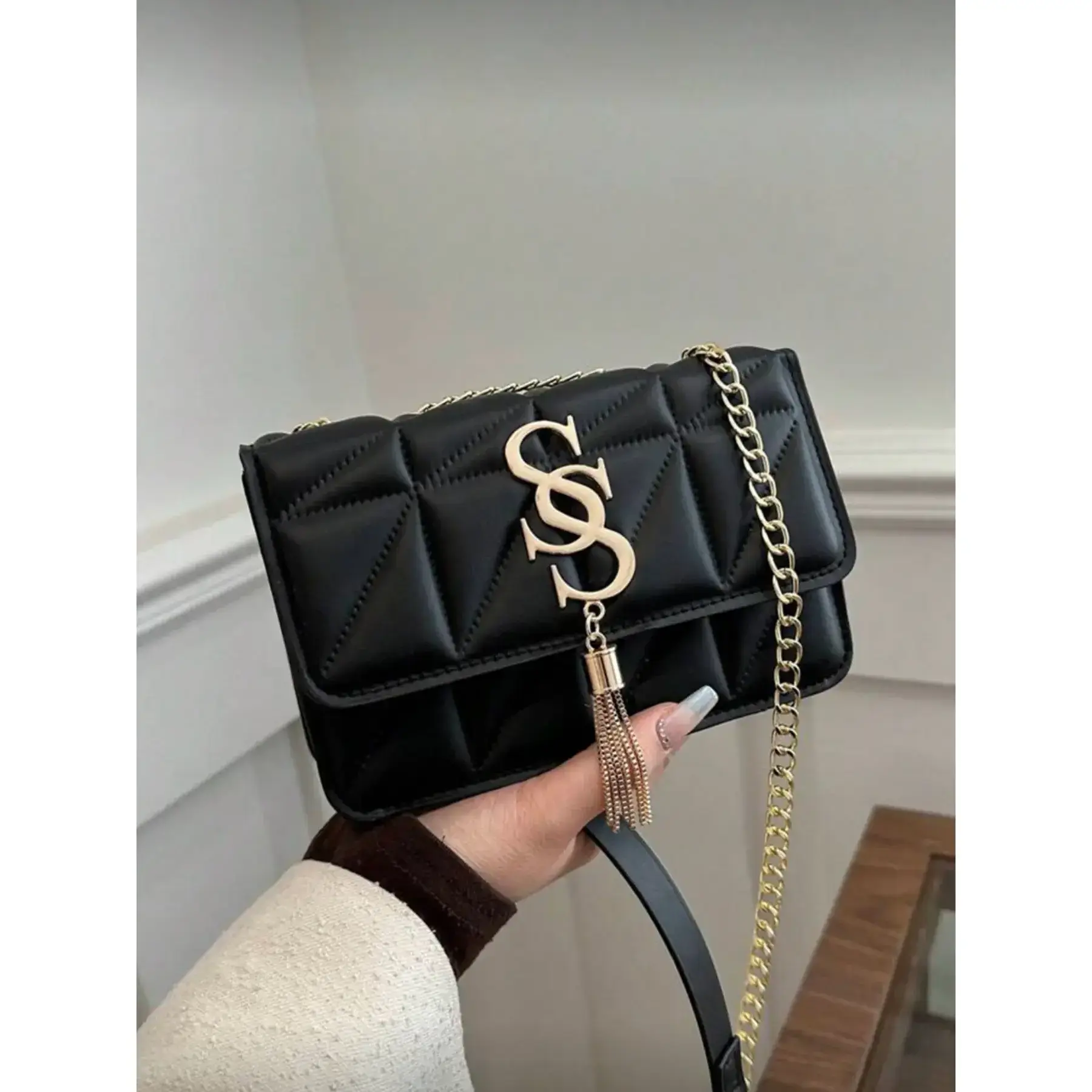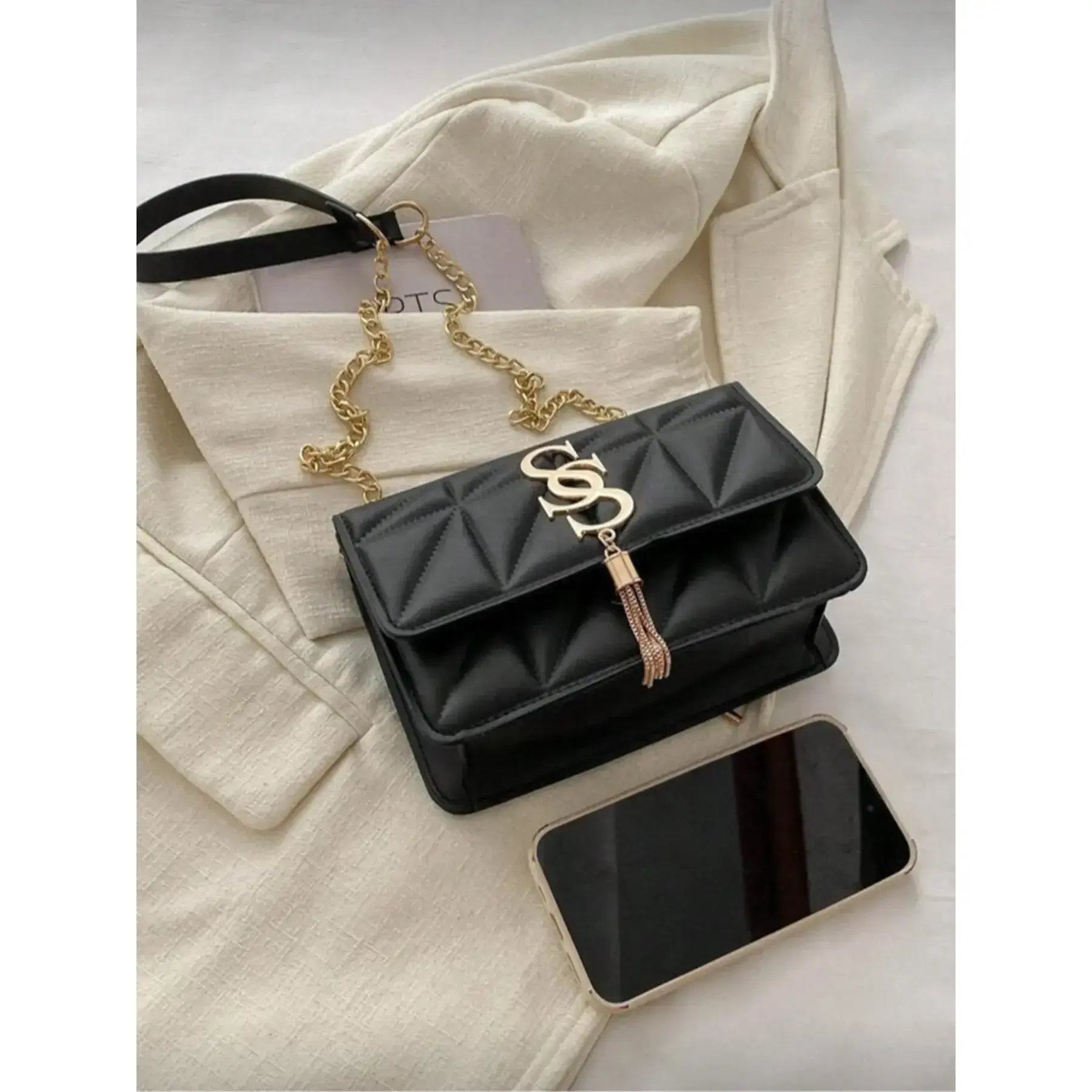 Fashion Plain Quilted Flap Small Square Bag, PU Chain Crossbody Bag, Women's Tassel Decor Mini Shoulder Bag Wallet, Perfect for Shopping, Fashionable Crossbody Bag